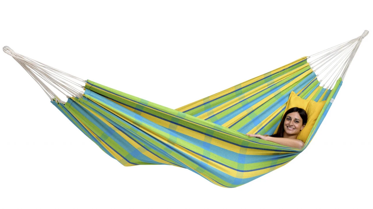 Die ideale Entspannungsmöglichkeit für Pärchen: Die Amazonas Barbados Doppelhängematte verbindet hohen Komfort mit niedrigem Preis. Der besonders dichte Stoff mit 400 g/m² erlaubt eine Belastbarkeit bis zu 200 kg und hält dadurch, auf einer Fläche von ca. 230 x 150 cm, zwei Personen locker stand. Die optisch sehr ansprechende Amazonas Barbados Doppelhängematte ist schon jahrelang für ihre intensiven Farben und das schöne Muster bekannt und beliebt. Sie wird in traditioneller, nachhaltiger Handarbeit in Brasilien unter fairen Bedingungen gefertigt.