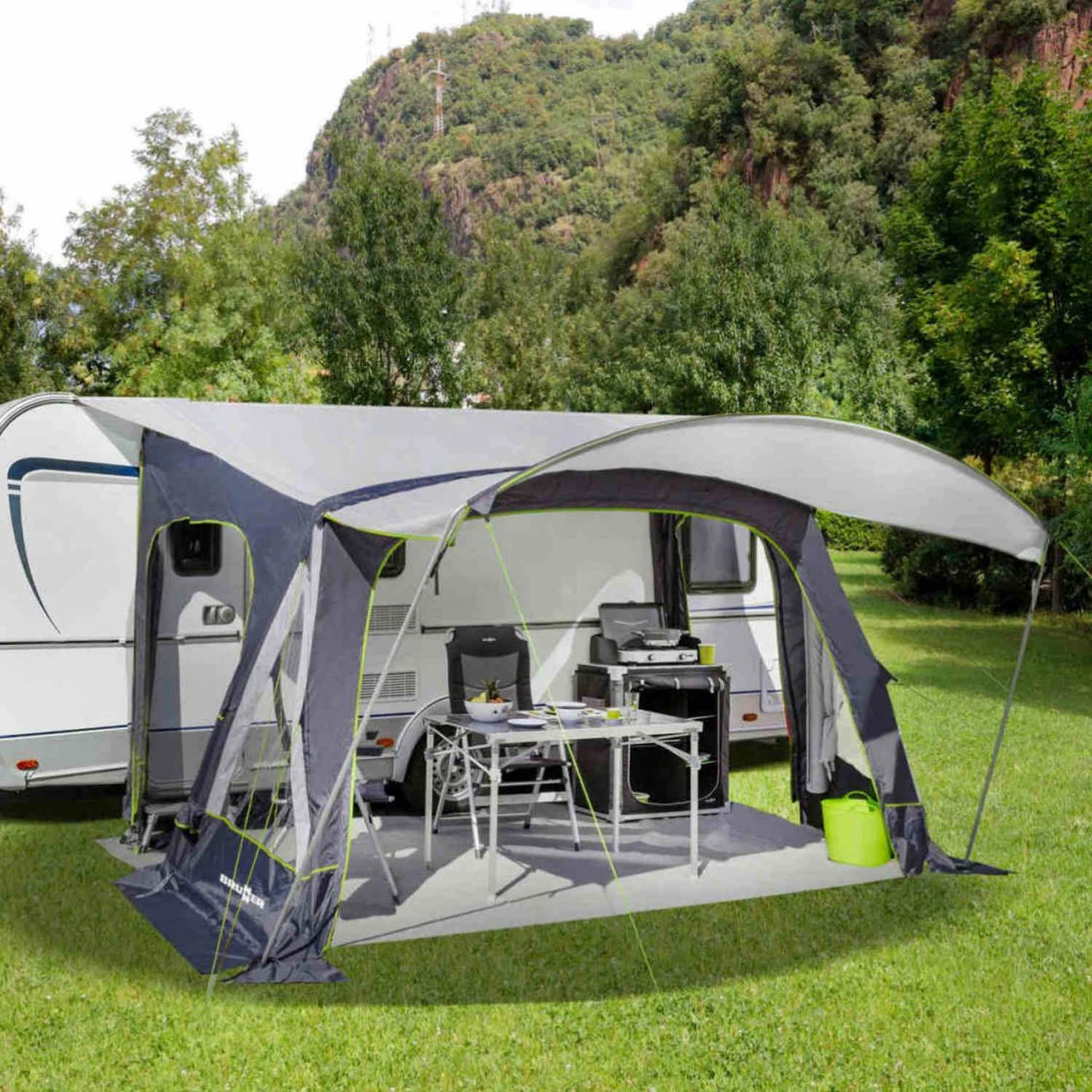 Das Brunner Alice Wohnwagenvorzelt ist das ideale Reisevorzelt für deinen nächsten Campingurlaub. Durch das verbaute Luftgestänge ist ein einfacher und schneller Auf- und Abbau garantiert. Das integrierte Vordach eignet sich perfekt als Sonnenschutz. Die Seitenwände sind mit einem Moskitonetz ausgestattet und in Kombination mit der Hochentlüftung, erzielst du in deinem Vorzelt eine optimale Luftzirkulation. Das Brunner Alice Wohnwagenvorzelt ist mit einem leichten, dennoch strapazierfähigen und robustem Polyester Material mit einer Wassersäule von 3000 mm ausgestattet. Mit einer Breite von 390 cm und einer Tiefe von 270 cm hast du und deine Familie ausreichend Platz.