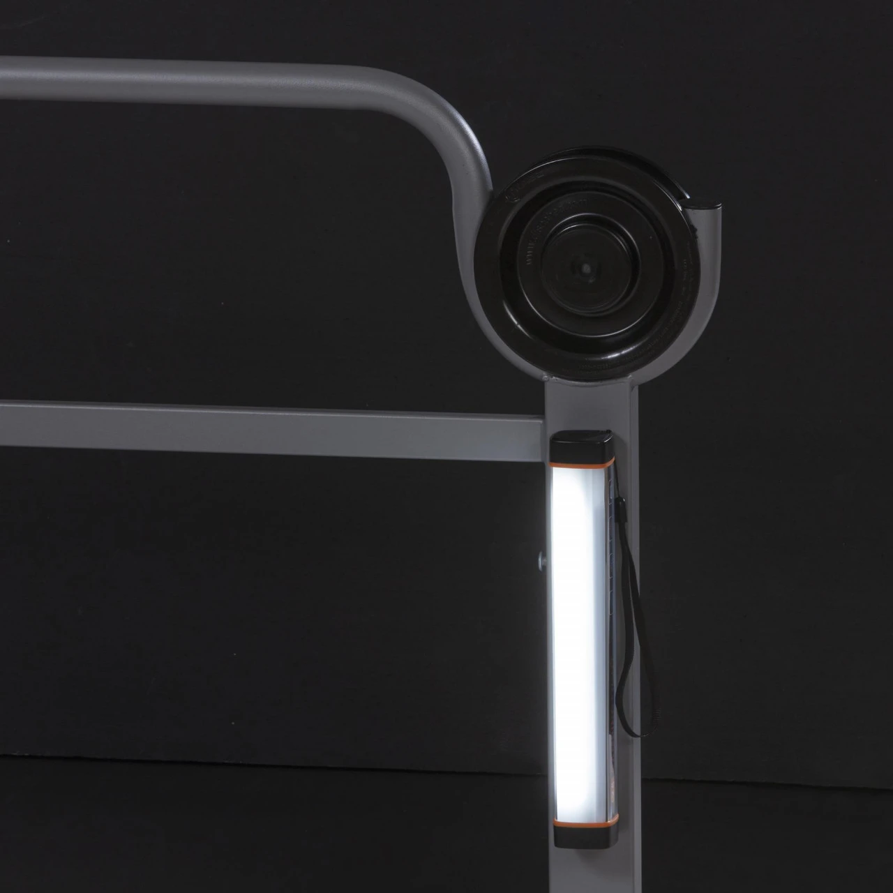 Das innovative Outdoor- und Campinglicht Disc-O-Bed X5 Mini ist universell beim Camping, Trekking, Wandern aber auch im Garten, in der Garage oder auf dem Balkon einsetzbar. Es ist handlich und bietet verschiedene Lichteinstellungen und Funktionen. So kann das Disc-O-Bed X5 Mini als Taschenlampe oder als Leuchte genutzt werden. Es verfügt zudem über ein Notlicht (blau-rot blinkend), sowie über ein orangenes Mückenabwehrlicht. Mit der integrierten Powerbank und dem mitgelieferten USB-Ladekabel kannst du mit dem X5 Mini elektronische Geräte, wie dein Handy oder einen Lautsprecher aufladen. In der X5 Mini sind 2 Magnete integriert, damit kannst du die Lampe an metallischen Gegenständen anbringen.