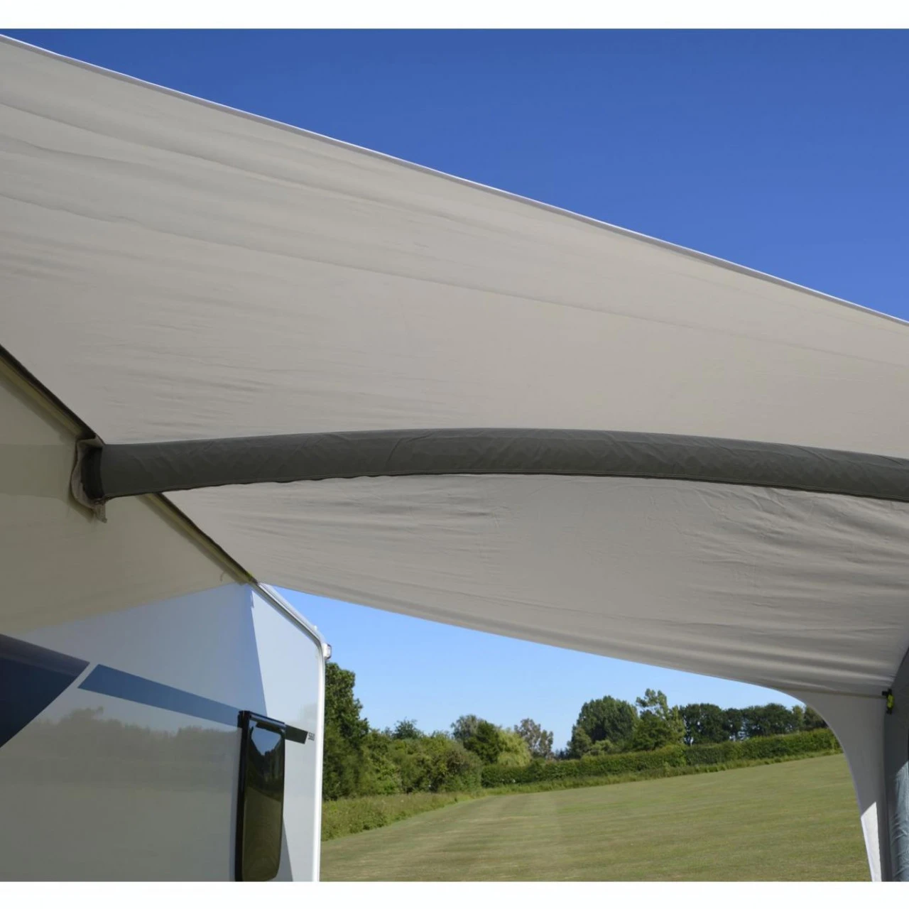 Das Dometic Sunshine AIR Pro 300 Sonnensegel ist der ideale Begleiter für deinen Wohnwagen. Dank der Luftsäulen ist das Sonnensegel in wenigen Sekunden aufgebaut. Durch die optionalen Seitenwände kannst du mehr Privatsphäre genießen und bist gleichzeitig vor Wind geschützt. Sollte mal ein starker Sturm die Verankerung aus dem Boden reißen, dann kann bei dem Sunshine AIR Pro 300 Sonnensegel so gut wie nichts passieren – die Luftschläuche beschädigen das Fahrzeug nicht.