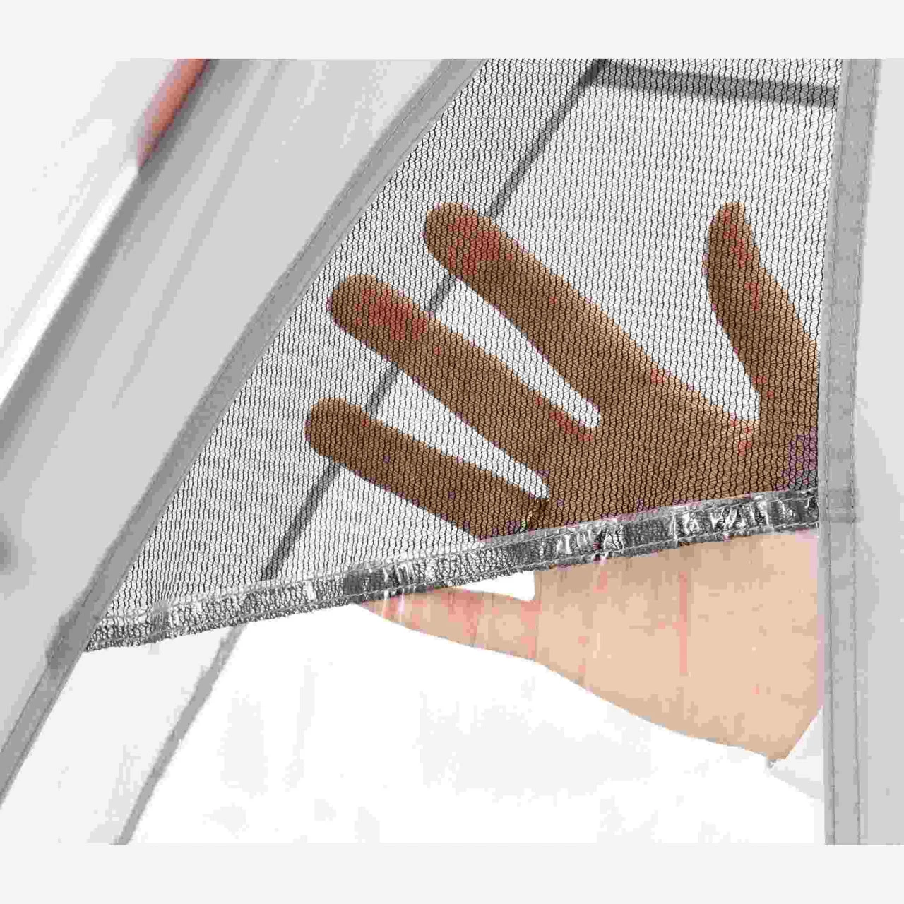 Das abgedunkelte Innenzelt reduziert das Licht in der Kabine und sorgt so für einen erholsameren Schlaf. Damit die Luft auch gut zirkulieren kann, ist der obere Bereich der Innenzelttür aus Moskitonetz. Auf der Rückseite des Edendale 400 befindet sich eine Lüftungsöffnung, die entweder komplett hochgerollt werden kann oder bei Regen wettersicher fixiert.