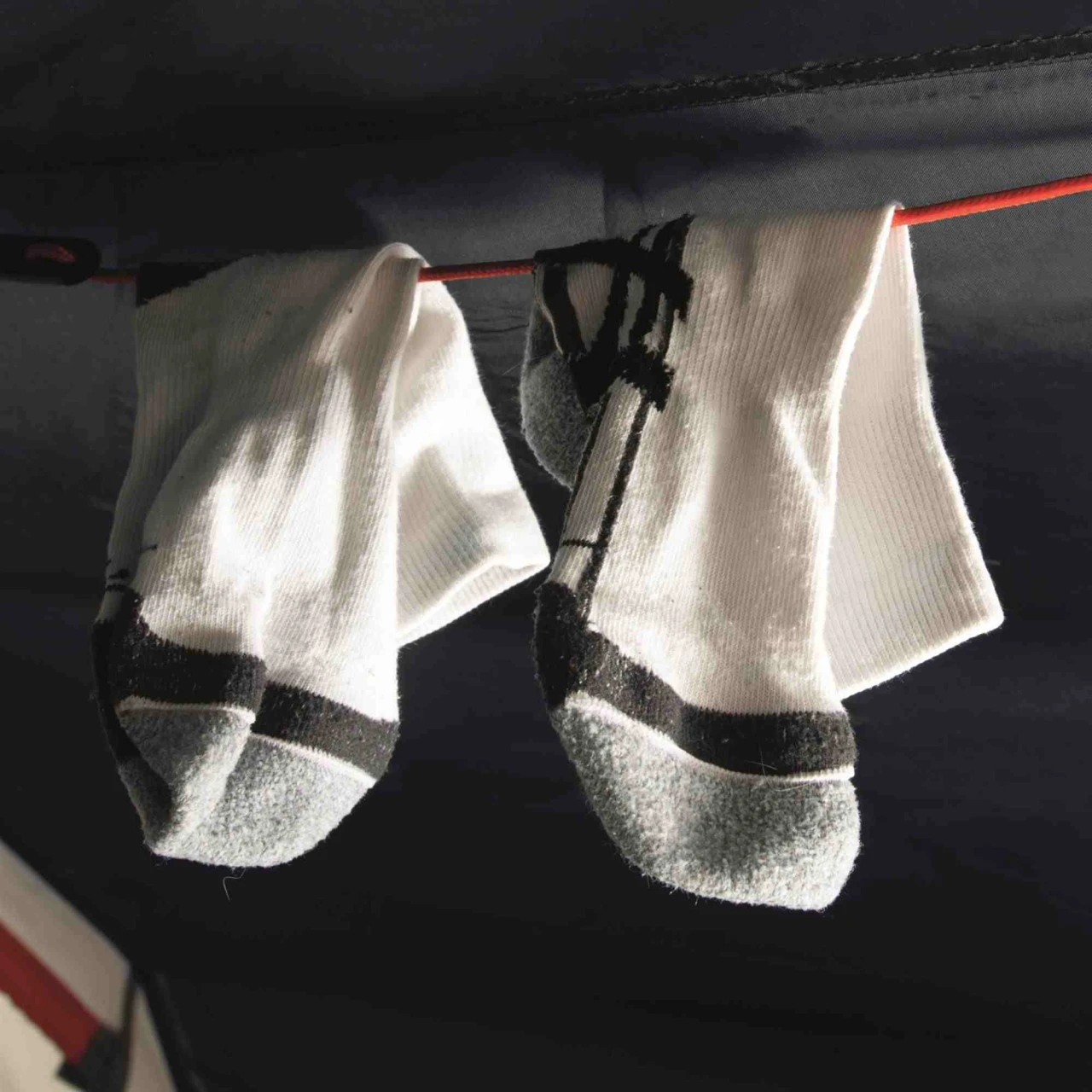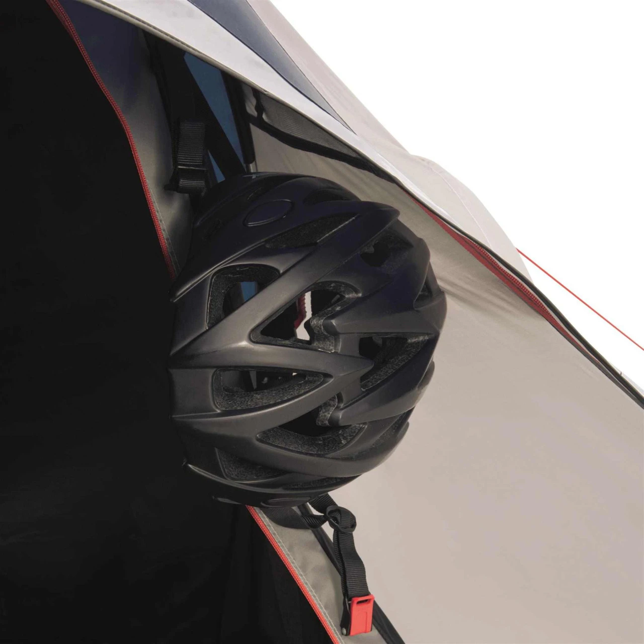 Was macht das Energy 200 Campact zu einem Bikepacker Zelt? Es wurden viele kleine Details eingearbeitet, die die Pause zwischen den Touren angenehmer machen. Im abgedunkelten Innenzelt ist eine Wäscheleine vormontiert, an der du deine Sachen trockenen kannst. Im Lieferumfang ist eine kleine Netztasche, in der deine Fahrradlampe (oder Stirnlampe) als Zeltlampe dient. In der Apside sind zwei Haken angebracht, an der du deine Fahrradhelme über Nacht aufhängen kannst.