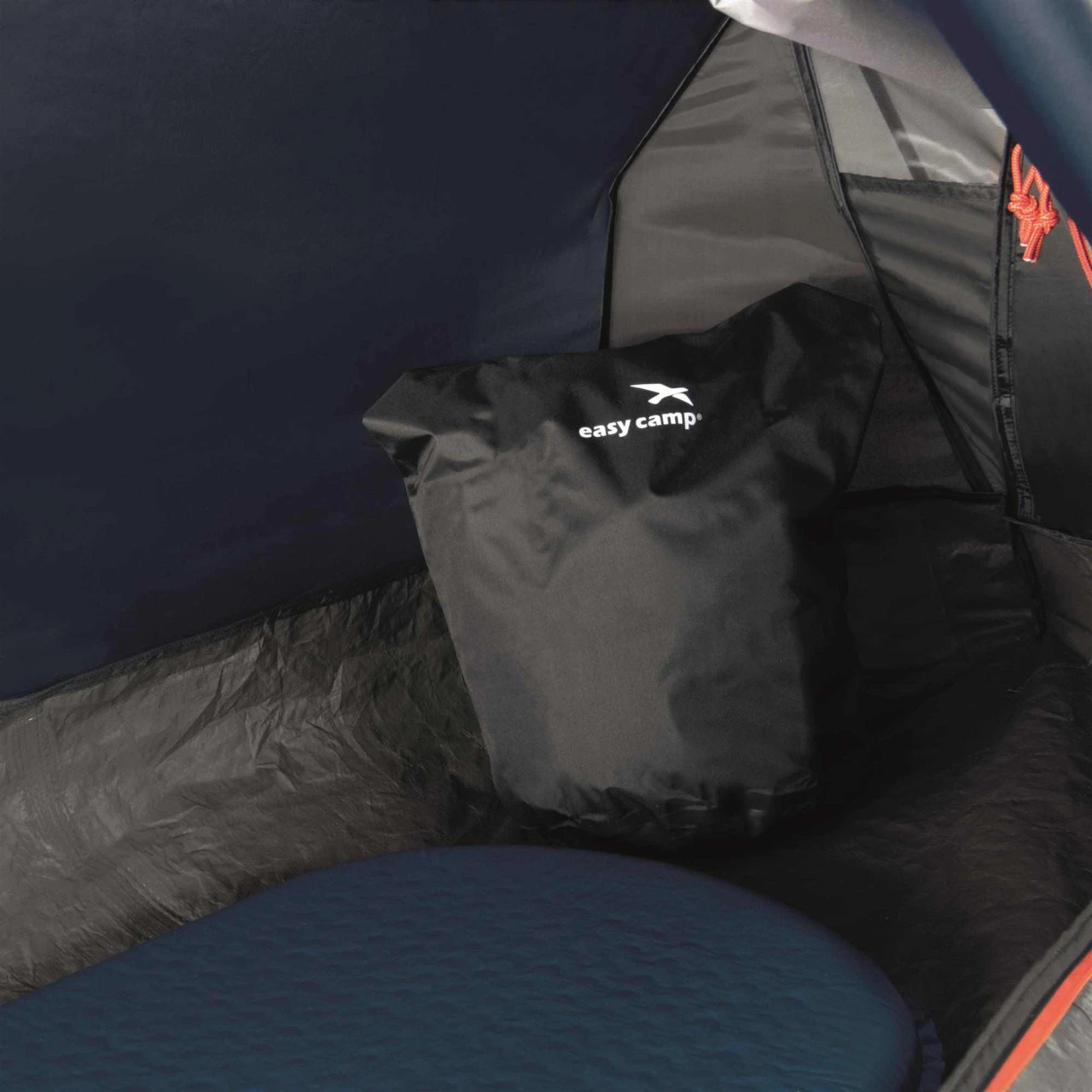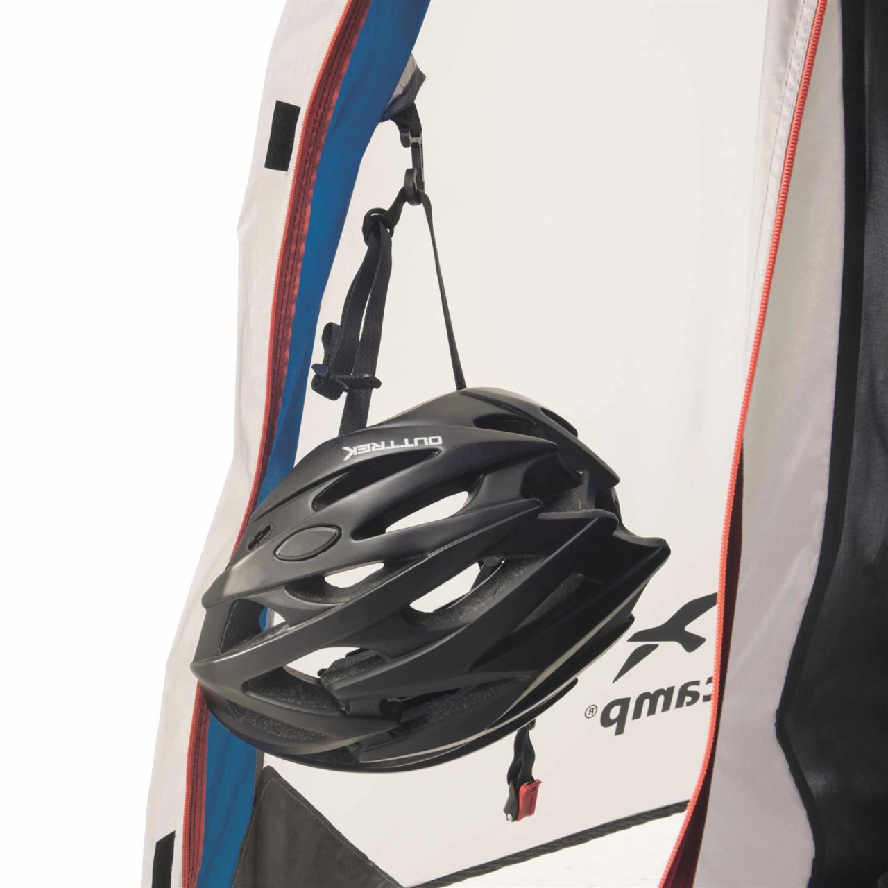 Wenn du eine Fahrradtour über mehrere Tage unternimmst, musst du nachts auch geschützt schlafen. Hierfür eignet sich das Geminga 100 Compact von Easy Camp. Es lässt sich schnell und einfach aufbauen. Das zweiwandige Tunnelzelt wartet mit vielen kleinen Details auf. Im spitz zulaufenden, abgedunkelten Schlafbereich kannst du deine Ausrüstung verstauen. In der kleinen Apside vor dem Eingang befindet sich ein Haken, an dem du deinen Helm über Nacht hängen lassen kannst. Auf der Wäscheleine im Innenzelt kannst du deine Kleidung trocknen. Damit du im Dunkeln noch die nächste Tour vorbereiten kannst, wird eine Lichttasche mitgeliefert. In diese packst du deine Fahrradlampe und hängst sie auf. So wird die Fahrradlampe zur Zeltlampe umfunktioniert.
