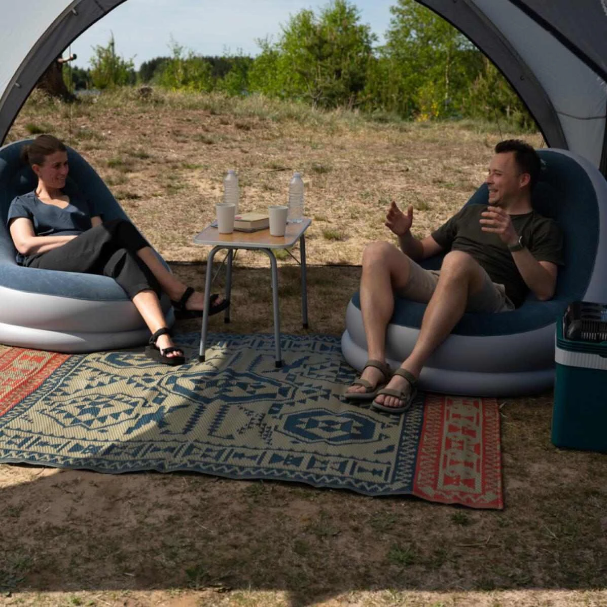 Der Easy Camp Moonlight Square Carpet ist ein quadratischer Zeltteppich mit einer Fläche von 2,0 x 1,5 m, der deinem Zelt ein sehr wohnliches Ambiente verleiht. Durch das strapazierfähige Material kannst du den Teppich aber auch ohne Problem außerhalb deines Zeltes benutzen. Im Zelt dient der weiche Teppich als zusätzliche Isolationsschicht gegen Bodenkälte und schützt den Zeltboden vor Abrieb – z.B. durch Campingmöbel