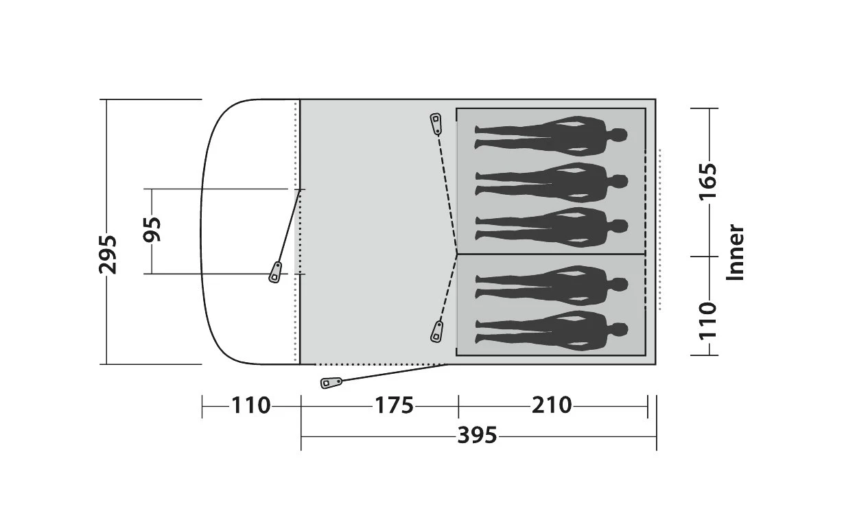 Das Palmdale 500 Familienzelt aus der TOUR Modellreihe ist ein größeres Tunnelzelt der Reihe mit Platz für bis zu 5 Personen. Es eignet sich herrvoragend für Familien, die ein vielseitiges Zelt suchen, aber während ihres Urlaubes nichts missen möchten. Das vorgeformte Fiberglasgestänge des Palmdale 500 Familienzeltes bietet mehr Kopffreiheit und der eingenähte Zeltboden schützt Dich vor kalter Zugluft oder lästigen Insekten. Weiterhin besitzt dieses Modell einen Trennvorhang mit Reißverschluss durch welchen man den Schlafbereich in zwei separate oder eine große Schlafkabine teilen kann. Durch das abgedunkelte Material werden die Schlafkabinen abends früher dunkel und morgens später hell. Somit habt ihr lange, entspannte Nächte. Doppeltüren und ein Seiten- sowie Vordereingang erweitern den flexiblen Zugang. Das große Vorzelt schützt einerseits die Belüftungsöffnungen vor Regen, andererseits bietet es genügend Stauraum und Schutz. Die großen Fenster durchfluten den Innenraum mit Licht und sorgen für eine weitere Belüftungsmöglichkeit.