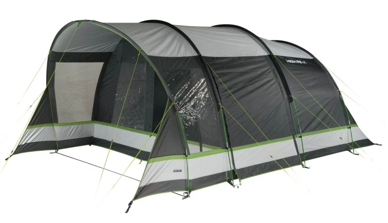 Das High Peak Garda 5.0 Familienzelt im Tunneldesign gehalten, bietet 5 Personen Platz und überzeugt mit vielen praktischen Features. Der Nassbereich verfügt über Klarsichtfolien-Fenster und bietet Dir einen geschützten Zugang ins Zelt. In das Innere des Zeltes gelangst Du durch die große Verandafront, die Du komplett oder nach Deinen Bedürfnissen auch halb öffnen kannst. Einen weiteren Zugang ins Zelt bekommst Du über den Seiteneingang. Dieser ist zusätzlich mit einer Mesh-Tür ausgestattet. Im Inneren Deines Zeltes hast Du einen großen Wohnraum, der Dir viel Platz zum Kochen, Spielen und Entspannen bietet. Durch die Klarsichtfolienfenster kommt viel Licht in Dein Zelt. Möchtest Du hingegen mehr Privatsphäre genießen, kannst Du die Gardinen vorziehen. Außerdem verfügt das Garda 5.0 über zwei abgedunkelte Schlafkabinen. Die beiden Schlafkabinen sind mit einer Reißverschluss-Trennwand voneinander getrennt. Möchtest Du einen großen Schlafraum haben, kannst Du die Trennwand herauszippen. Für einen besseren Schlafkomfort sind die Schlafkabinen mit zwei Vario Vent Control Eingängen mit Meshfenstern ausgestattet. Die Meshfenster können bei Bedarf geschlossen werden. Im Innenzelt befinden sich an den Seitenwänden Innentaschen. Dort kannst Du Zeitschriften oder Ähnliches verstauen. Zu den weiteren Ausstattungsmerkmalen des Garda 5.0 gehören eine Lampenhalterung, ein Dual Flow Vent System, verstellbare Spanngurtbänder, ein rolldown Packsack mit Kompressionsgurten und eine Positionsmarkierung, die das Einhängen des Außenzeltes erleichtert.