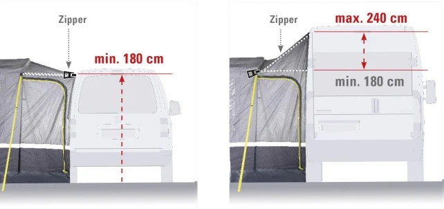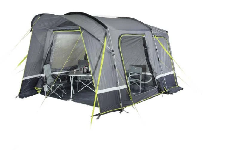 Das High Preak Riva 2.0 Busvorzelt ist ein freistehendes Kuppelzelt, in dem bis zu 2 Personen Platz finden. Die freistehende Funktion eignet sich besonders gut, wenn Du mit Deinem Bus einen Ausflug machen möchtest. Dafür muss es dann nicht extra abgebaut und weggepackt werden. In das Innere des Zeltes gelangst Du durch den überdachten Haupteingang oder dem mit Mesh ausgestatteten Seiteneingang. Das Riva 2.0 hat durch die Steilwand mit Rundbogendach eine optimale Raumnutzung. Für noch mehr Komfort kannst Du ein Innenzelt dazu bestellen, welches Du als Schlafkabine nutzen kannst. Durch sein Klarsichtfolien-Fenster, sein großes Panorama-Fenster und einem Mesh-Fenster ist das Zelt angenehm hell. Bei Bedarf können diese Fenster aber auch mit der Vario Reißverschluss-Abdeckung geschlossen werden. Für eine angenehme Luftzirkulation im Zelt sorgt die Hochentlüftung. Wenn Du bei gutem Wetter gern ein luftiges Vorzelt haben möchtest, kannst Du auch Veranda Front offenhalten und wie auf einer überdachten Veranda im Grünen sitzen. Zu den weiteren Ausstattungsmerkmalen des Riva 2.0 gehören eine aufrollbare Schleuse, vier Sicherheits-Sturmbänder, eine verschließbare, teilbare 50/50 Rückwand mit Easy Stow Away Tasche, ein Packsack, drei Klettbandschlaufen für die Dachreling und ein Hohlraum-Schleusenstab.