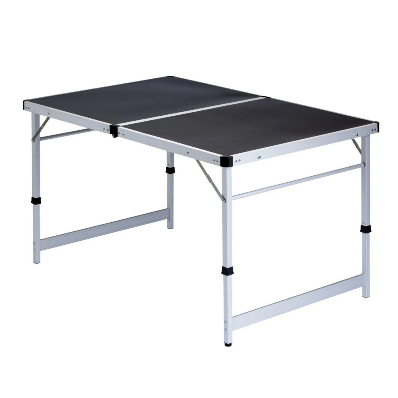 Der Isabella Faltbarer Klapptisch 120 x 80 cm ist ein stabiler Tisch mit einem Aluminiumgestell. Die Platte lässt sich mittig teilen und wie ein Koffer zusammenfalten. Daher ergibt sich ein geringes Packmaß bei großer Nutzfläche. Für den einfachen Transport ist eine Tragetasche inklusive.