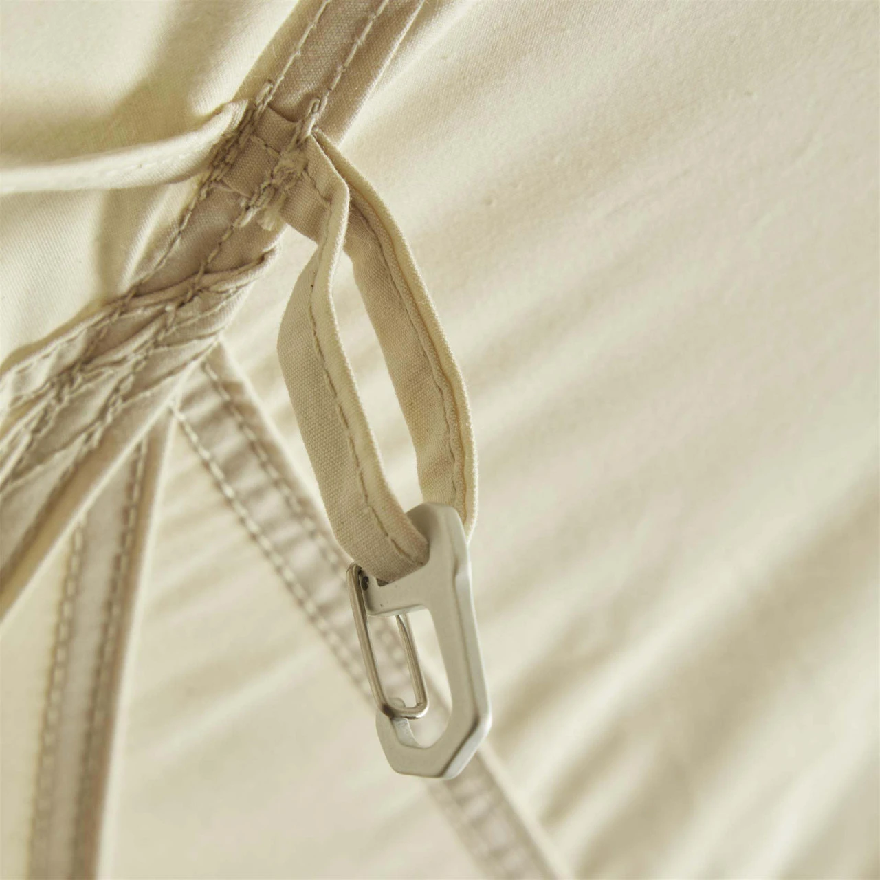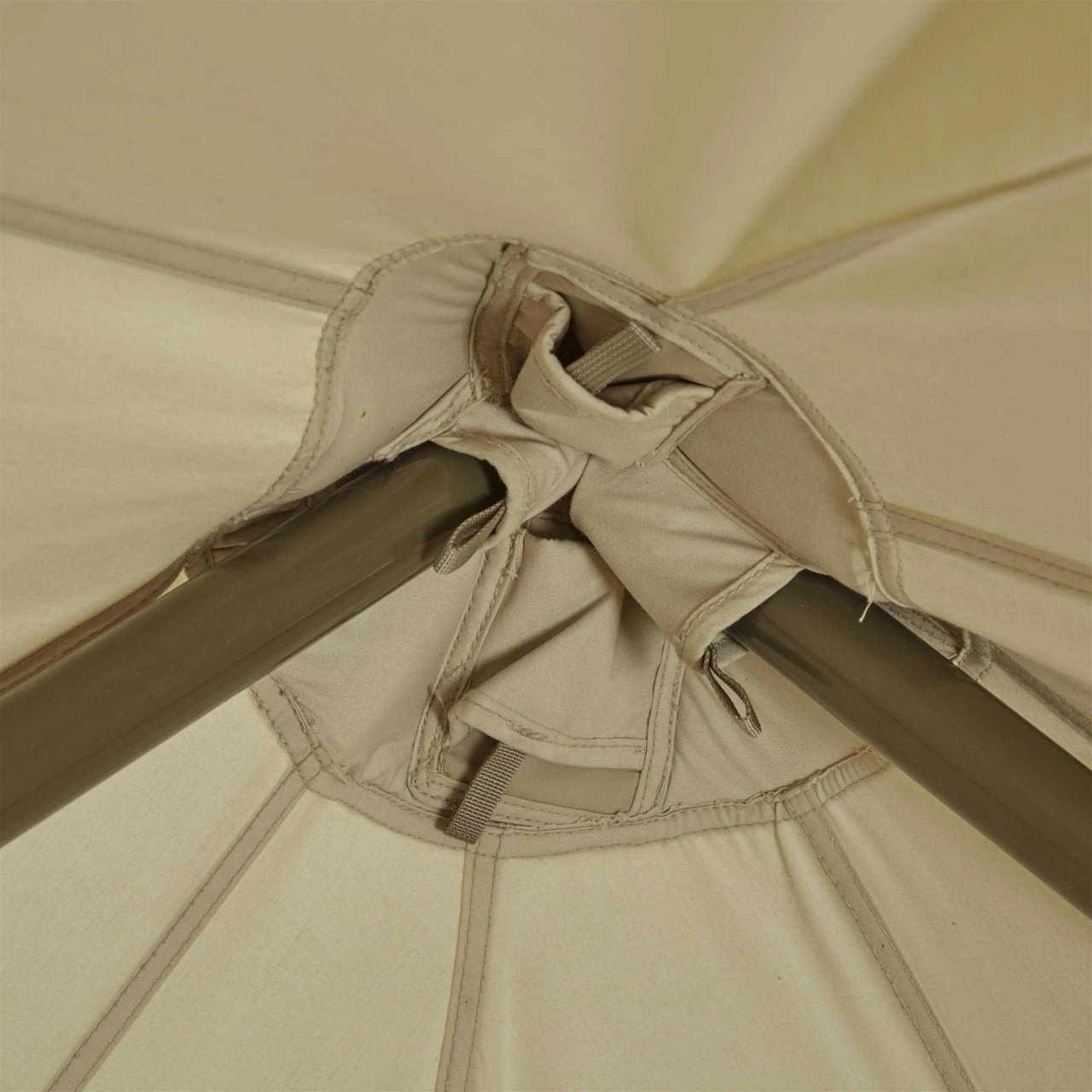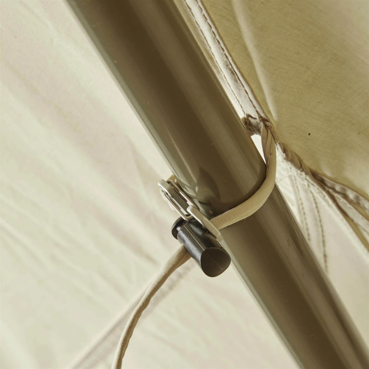 Das Nordisk Midgard 9.2 Familienzelt ist ein stangenfreies Baumwoll-Mischgewebe Zelt, welches in einem innovativen Design gehalten ist. Es lässt sich schnell und leicht aufbauen. Im Zelt selbst finden bis zu 6 Personen problemlos Platz und der geräumige Wohnbereich dient gleichzeitig als Schlafbereich. In das Innere des Zeltes gelangst Du durch einen der beiden Eingänge. Im Inneren des Midgard 9.2 hast Du durch die 2,70 Meter Zelthöhe eine zentrale Stehöhe. Durch die Fenster und Türen kommt besonders viel Licht und Luft in das Zelt. Dies sorgt für ein helles und belüftetes Zeltklima. Darüber hinaus sind die Fenster und Türen mit Moskitonetzen ausgestattet, sodass keine Insekten hineinkommen können. Zu den weiteren Ausstattungsmerkmalen des Midgard 9.2 gehören unter anderem ein großes Vordach über dem Eingang, welches einen sicheren Zugang ins Innere gewährt, aber auch vor Witterungseinflüssen schützt und eine stangenfreie Optik, da es keine störende Mittelstange gibt. Außerdem lässt sich das Midgard 9.2 mit der Vimur-Serie in der Größe und Fläche erweitern.