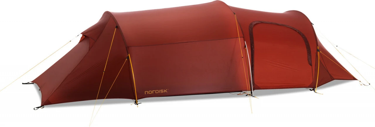 Das Nordisk Oppland 3 LW Trekkingzelt ist ein geräumiges 3-Personen Tunnelzelt. Es besticht durch sein geringes Gewicht und Packmaß und lässt sich außerdem schnell und einfach aufbauen. In das Innere des Zeltes gelangst Du durch die Seitentür. Die geräumige Apsis bietet Dir die Möglichkeit Dein Equipment zu verstauen oder auch zu kochen, aber auch um Dein Zelt zu belüften. Die große Innenkabine hat Innentaschen, in denen Du persönliche Gegenstände verstauen kannst. Darüber hinaus hat das Innenzelt eine gute Sitzhöhe. Durch die Tunnelkonstruktion ist das Oppland 3 LW sehr windstabil und bietet Dir einen sicheren Zufluchtsort bei schlechtem Wetter. Für eine optimale Belüftung sorgen die Belüftungsöffnungen an jedem Zeltende und die Eingangstür.