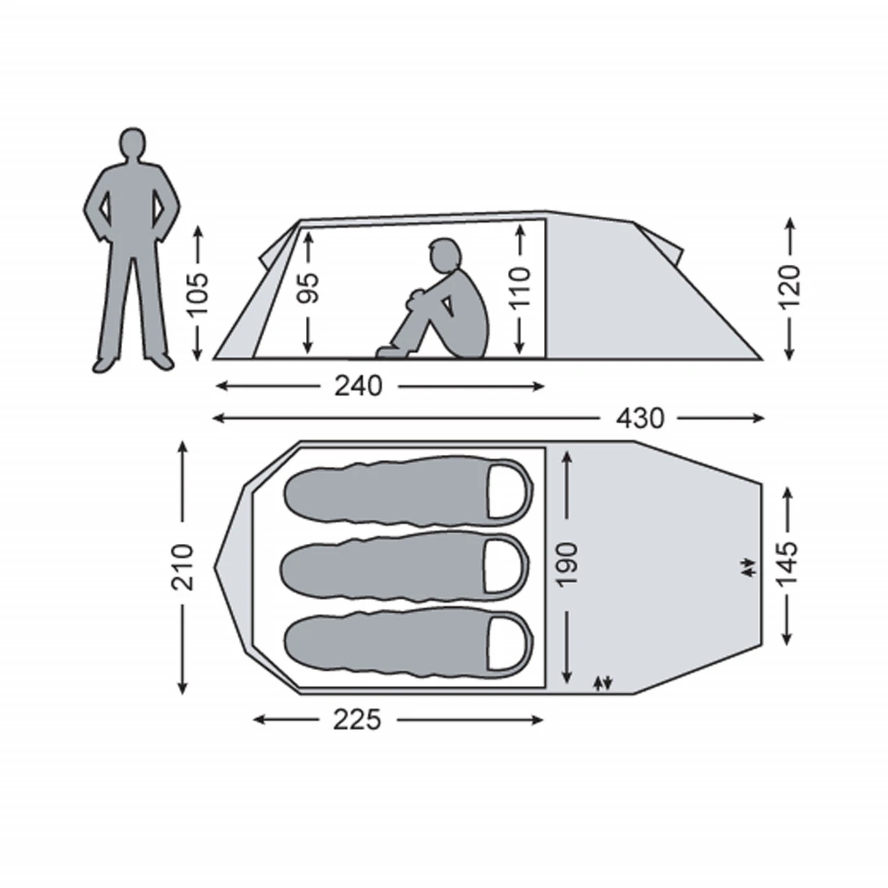 Das Gestänge aus ultraleichtem Aluminium hält Windgeschwindigkeiten bis 35 m/sec (126 km/H) zuverlässig stand. Durch das geringe Packmaß eignet sich das Drei-Personen-Zelt gut für Wander-, Kajak- und Radtouren. Mit einem Gewicht von 2400 g besitzt Oppland 3 die gleichen Details und Eigenschaften wie seine beiden kleinen Geschwister, lediglich die drei Zeltstangen werden in einem Cordura-Schlauch auf dem Außenzelt entlang geführt.