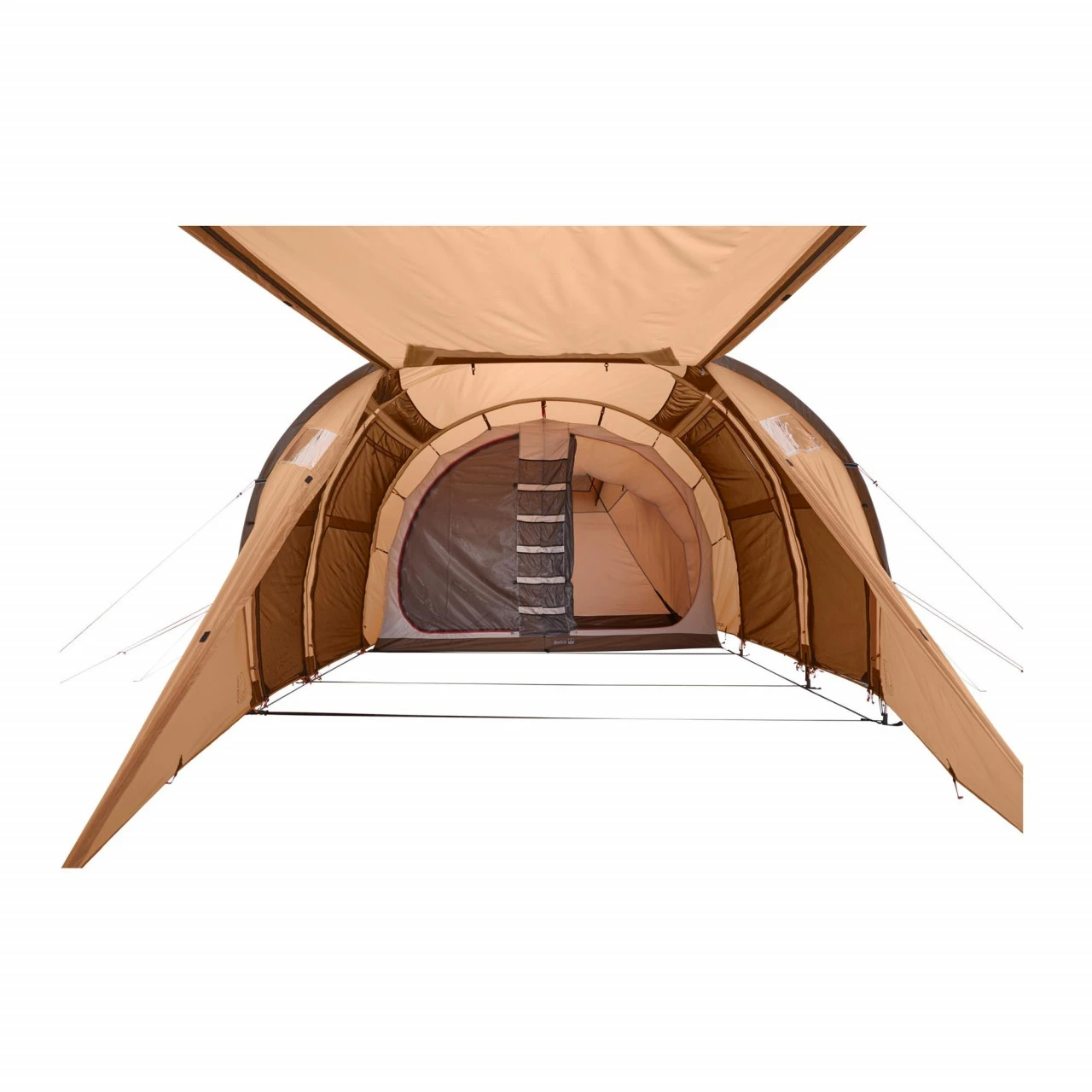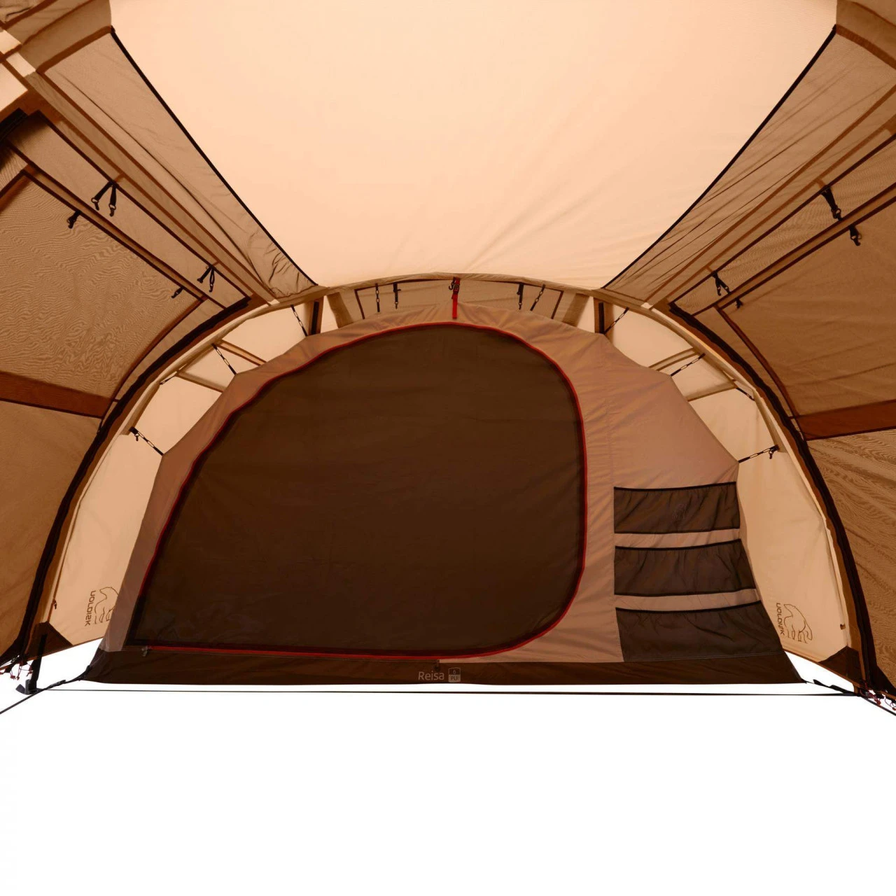 Das Nordisk Reisa 6 PU Familienzelt eignet sich hervorragend für einen Familienurlaub zu sechst. In das Innere des Zeltes gelangst Du durch eine der beiden Türen. Die Türen können komplett geöffnet und als Sonnendach aufgestellt werden. Außerdem bestehen die Türen aus zwei Schichten mit No-See-Um-Netz und Fenstern mit integrierten Rollvorhängen. Somit ist Dein Zelt schön lichtdurchflutet und hat ein angenehmes Zeltklima. Bei Bedarf können die Fenster für mehr Privatsphäre verschlossen werden. Im Inneren des Zeltes befinden sich zwei Schlafkabinen, die mit eingenähten Bodenwannen versehen sind, sodass in Deiner Schlafumgebung ein angenehmes Klima herrscht. Die größere Schlafkabine kann bei Bedarf noch einmal in zwei geteilt werden. Die kleinere Schlafkabine kann bei Bedarf abgetrennt und als zusätzlicher Stauraum oder Apsis verwendet werden. Zu den weiteren Ausstattungsmerkmalen des Reisa 6 PU gehören unter anderem mehrere Aufbewahrungstaschen und Haken im Zelt, um dieses ein wenig wohnlicher zu machen, zusätzliches Gestänge, um das Sonnendach zu fixieren und Deckeltaschen für schnelles Verstauen der Windfangtüren. Platz für Dein Gepäck oder Deine Schuhe hält der hohe Zwischenraum bereit, der die beiden Schlafkabinen voneinander trennt. Kleinigkeiten oder besonders wichtige Ausrüstungsteile sind somit in Deiner Nähe!