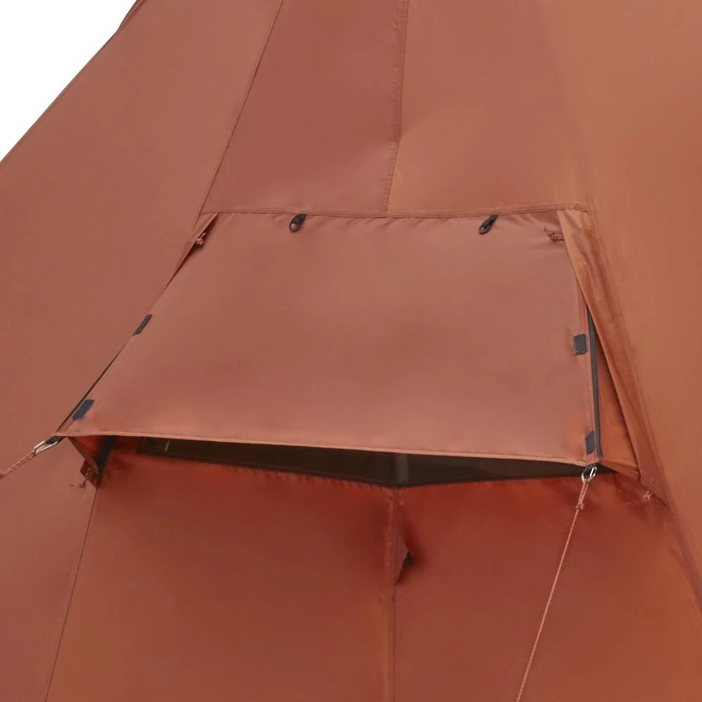 Das Nordisk Thrymheim 5 PU Tipi-Zelt bietet fünf Personen problemlos Platz. Es besticht durch sein geringes Gewicht und sein Packmaß. Darüber hinaus ist das Tipi-Zelt im Hüttenstil überwiegende stangen- und pfahlfrei durch die Turtle Hub® Technologie. In das Innere des Zeltes, in dem Du die volle Stehhöhe hast, gelangst Du durch die Mesh-Fronttür. Diese bietet Dir einen idealen Schutz vor Insekten und kann vollständig geöffnet werde, sodass Du eine gute Luftzirkulation im Zelt hast. Zusätzlich gibt es noch eine Bodenbelüftungsoption im hinteren Teil des Zeltes. Das Innenzelt ist mit zwei großen Mesh-Seitenfenster ausgestattet, die dass Zelt hell und freundlich machen und Insekten draußen halten. Das geräumige Thrymheim 5 PU bietet Dir ein großzügiges Platzangebot zum Verweilen und für Deine Ausrüstung und macht jeden Urlaub zu einem unvergesslichen Erlebnis.