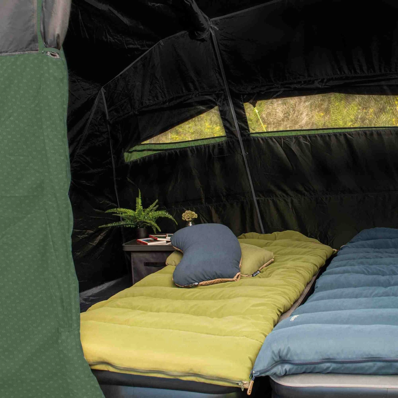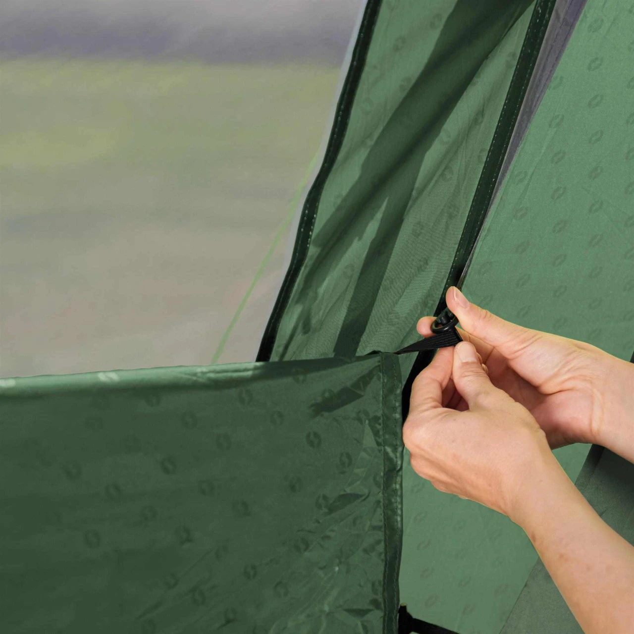 Das Outwell Ashwood 3 Familienzelt wurde speziell für Paare entwickelt, die gern Kurzurlaube mit dem Zelt unternehmen. Mit dem ummantelten Duratec-Fiberglasgestänge, der vollen Stehhöhe, der optimalen, vielseitigen Belüftung sowie den 2 patentierten Quick & Quiet Magnettüren steht einem komfortablen Campingerlebnis nichts mehr im Weg. Hinter der Vorderwand mit Seitenfenster und großem Vordach gelangst du durch die neue, patentierte Quick & Quiet Mesh Tür mit Magnetverschluss in dein Zelt. Wenn du die Magnetfunktion nicht nutzen möchtest, kannst du die Front mit einem doppelten Reißverschluss komplett öffnen. Das eingearbeitete Moskitonetz ermöglicht eine Belüftung, ohne dass Insekten ins Zelt gelangen. Die abgedunkelte Premium Schlafkabine ist ebenfalls mit einer Quick & Quiet Tür versehen, so dass du die Kabine geräuschlos öffnen und verlassen kannst. Für eine optimale Belüftung der Schlafkabine des Ashwood 3 von Outwell sorgt das „Rear Ventilation System“. Eine spezielle, variable Belüftung an der Zeltrückseite. Die Netztaschen im Innenzelt dienen zur Aufbewahrung kleinerer Gegenstände, die du schnell zur Hand haben willst. Die großen getönten Fenster reduzieren das Blenden bei starker Sonneneinstrahlung. Um dir mehr Privatsphäre zu gewährleisten, kannst du die Fenster mit Vorhängen auch komplett schließen.
