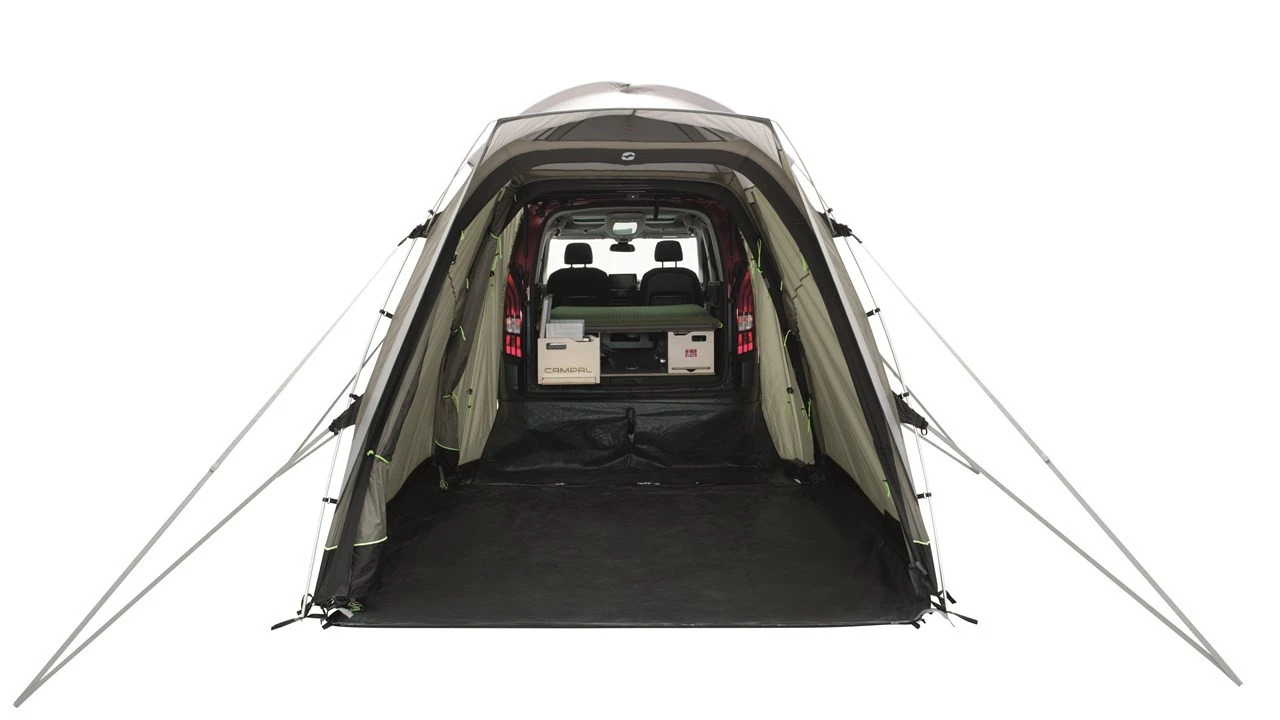 Das Outwell Beachcrest Heckzelt ist ein Dirve-away Heckzelt, welches ideal zu deinem SUV oder Mini-Van passt. Es wird schnell und einfach an deinem Fahrzeug befestigt. Möchtest du in deinem Urlaub die Gegend erkunden, aber nicht auf deinen Stellplatz verzichten? Dann ist dieses Zelt genau das richtige für dich. In das Innere des Zeltes gelangst du durch den Fronteingang oder eine der beiden Seitentüren. Die Fronttür kannst du bei Bedarf komplett wegrollen und hast so eine gute Aussicht auf die Umgebung sowie eine wunderbare Belüftung für dein Zelt. Durch die großen Netzfenster kommt Licht in das Beachcrest und macht es somit wohnlicher. Möchtest du hingegen mehr Privatsphäre genießen, kannst du die wasserdichten Vorhänge einfach vorziehen. Ein weiteres großes Fenster findest du in der Fronttür. Es ist leicht getönt, sorgt für Privatsphäre und Ausblick bei gleichzeitiger Reduzierung der Sonnenblendung. Das integrierte HookTrack-System ermöglicht dir im Zelt eine einfache Anbringung von Leuten und anderen Gegenstände bis zu 1,5 kg. Eine herausnehmbare Bodenplane verhindert Zugluft, Wassereintritt und krabbelnde Insekten in deinem Zelt.