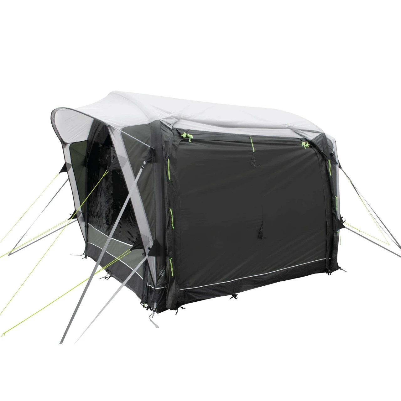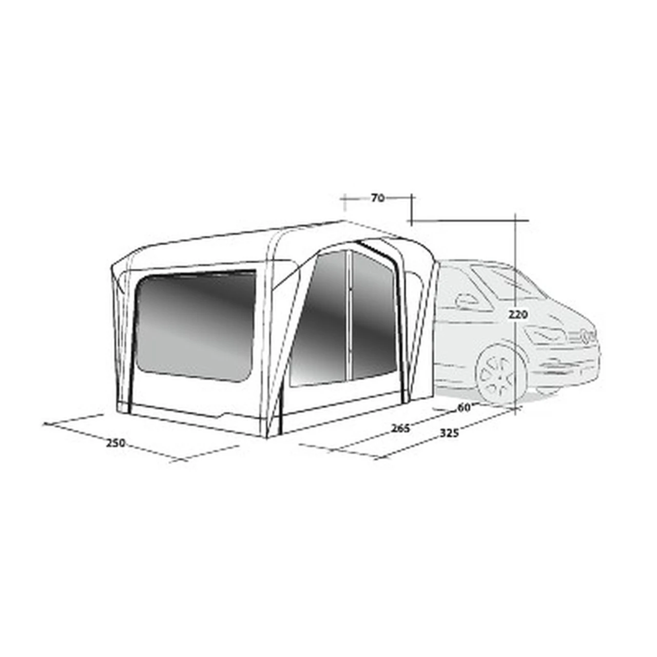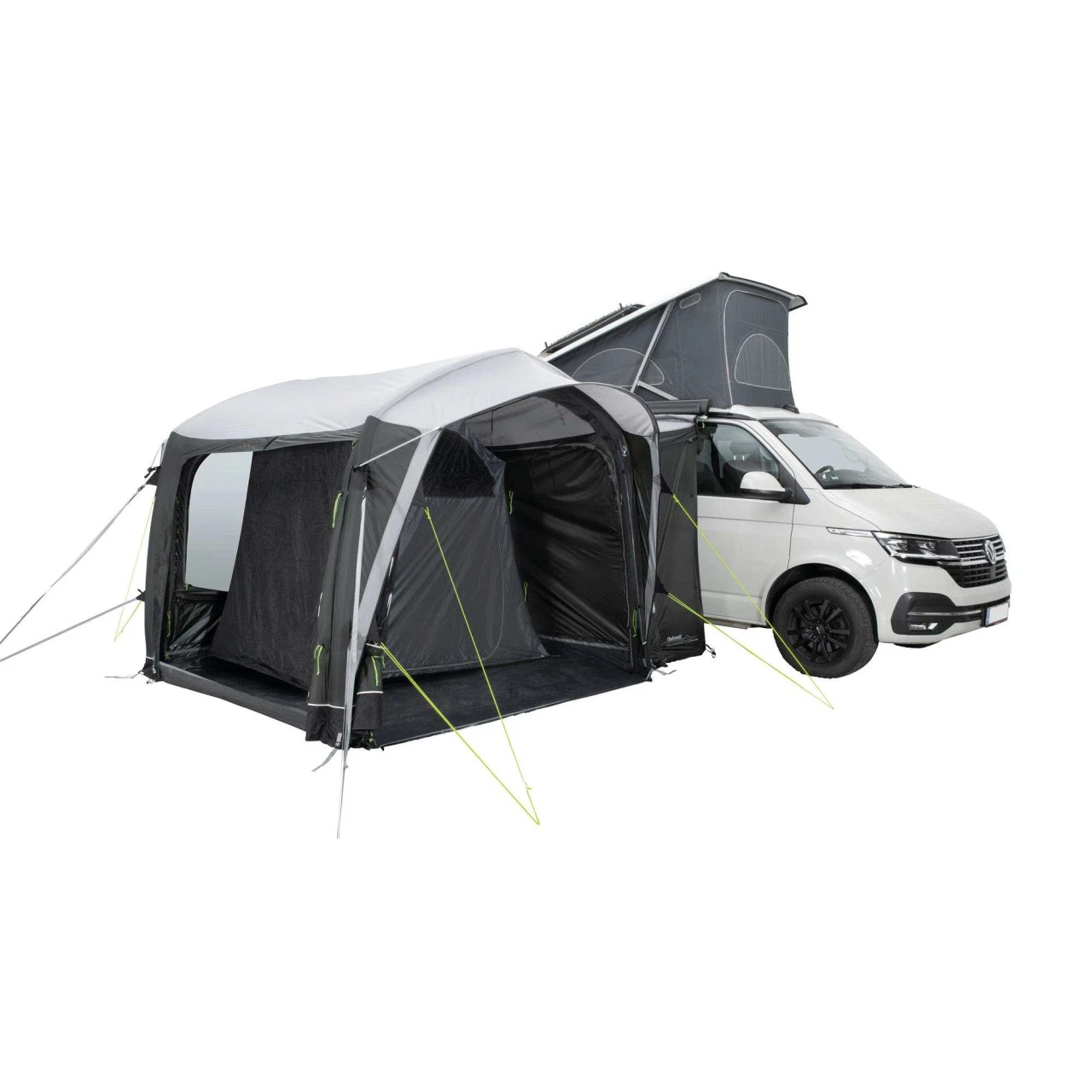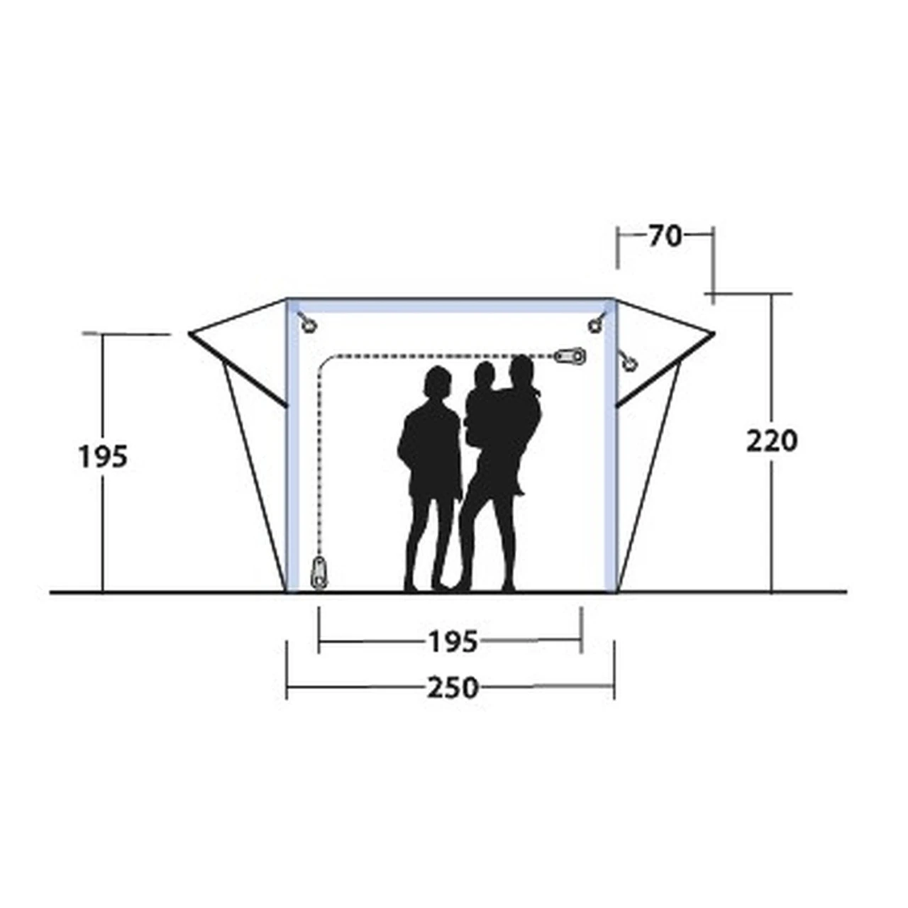 Das Outwell Crossville 250SA ist ein Busvorzelt, was parallel zum Bus steht. Es ist symmetrisch aufgebaut, was bedeutet, dass es an Vorder- und Rückseite je eine große Tür mit einem kleinen Schutzdach gibt. Die Vier-Schieber-Reißverschlüsse ermöglichen es, dass die Türen entweder halb oder ganz geöffnet werden können oder dass du nur die Tür wegrollst und die das dahinterliegende Moskitonetz als Schutz vor Insekten stehen lässt. Die zusätzliche Seitentür hat ebenfalls ein Moskitonetz hinter der Wand. Alle drei Türen können komplett weggerollt werden, so dass du einen optimalen Shelter für Feiern bei schönem Wetter hast. Das extra robuste Rip-Stop Material sowie die 6000 mm Wassersäule sorgen dafür, dass du auch bei schlechtem Wetter absolut geschützt in deinem Crossville 250SA bist. In der Schleuse, die durch 2 Türen betreten werden kann, sorgt die Bodenplane mit integriertem Zugluftstopper dafür, dass es im Zelt nicht zieht. Mit dem optional erhältlichen abgedunkelten Innenzelt kann zusätzlicher Schlafraum geschaffen werden. Damit dein Zelt ein noch wohnlicher wird, verfügt das Zelt über das HookTrackSystem. Dieses System bietet Dir vielseitige Möglichkeiten, Gegenstände oder Lampen aufzuhängen.