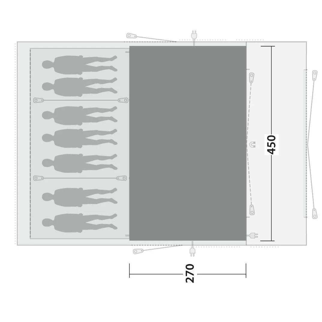 Der Outwell Flat Woven Carpet Vermont 7PE ist ein Zeltteppich aus weichem aber strapazierfähigem Material, der passgenau auf den Wohnbereich deines Outwell Vermont 7PE Familienzelt zugeschnitten ist. Er lässt nicht nur den Wohnraum gemütlicher wirken, sondern dient ebenfalls als zusätzliche Isolationsschicht und hält Deine Füße angenehm warm. Außerdem wird durch den Zeltteppich der Zeltboden vor Abrieb durch z.B. Campingmöbel geschützt. Mit dem Flat Woven Carpet Vermont 7PE Zeltteppich machst Du Dein Zelt zu einem komfortablen Wohlfühlbereich, in dem du gerne Zeit mit deiner Familie oder deinen Freunden verbringst.