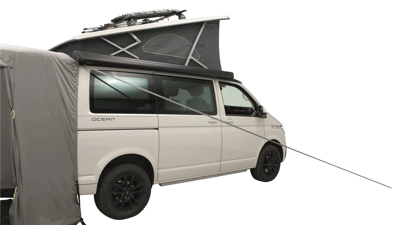 Das Outwell Sandcrest L Heckzelt passt ideal zu deinem Multivan und Campingbus mit einer Anschlusshöhe von 175 – 205 cm. Es wird einfach und schnell an deinem Fahrzeugt befestigt. In das Innere des Zeltes gelangst du durch den Fronteingang. Du kannst sie mit zusätzlichen Stangen, die nicht im Lieferumfang enthalten sind, zu einem Vordach aufstellen. Die aufrollbaren Seitenwände bieten dir einen geschützten Zugang ins Innere des Zeltes. Zu den weiteren Ausstattungsmerkmalen des Sandcrest L gehören unter anderem große Netzfenster, die Licht ins Innere lassen und bei Bedarf für mehr Privatsphäre mit dem wasserdichten Vorhang verschlossen werden können. Durch die Netzeinsätzen gelangen keine Insekten in dein Zelt. Eine weitere wichtige Eigenschaft des Zeltes ist, dass du die Heckklappe in deinem Vorzelt öffnen kannst.