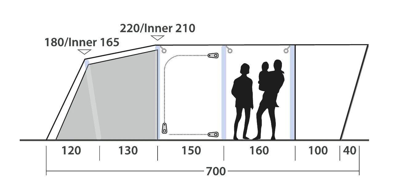 - Außenzelt und Innenzelt verfügen über Kabeleinführungen