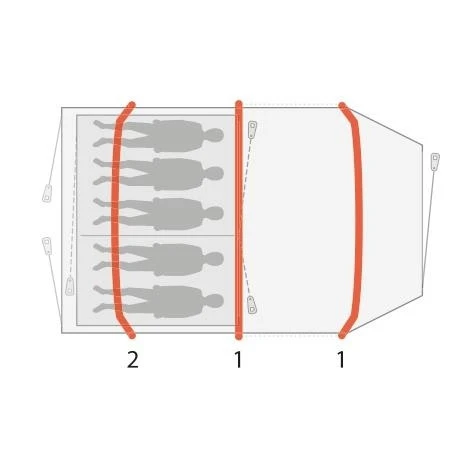 Das Outwell Starhill 5A ist das ideale Zelt, wenn du einen Campingausflug mit Freunden oder Familie machst. Die außen liegenden Luftkanäle sorgen für noch mehr Kopffreiheit im Inneren des Zeltes. Ein zweiter Eingang auf der Zeltrückseite ermöglicht es dir, direkt in die Schlafkabine zu gelangen oder diese zu verlassen, ohne durch den Wohnbereich zu gehen. Durch das Moskitonetz am 2. Eingang hast du zusätzlich noch die Möglichkeit der besseren Belüftung in der Schlafkabine. Das helle Dach über dem Wohnbereich schafft eine helle, freundliche Atmosphäre. Einen erholsameren Schlaf bekommst du in der abgedunkelten Premium Schlafkabine, die bei Bedarf auch in 2 separate Kabinen geteilt werden kann. Die Kabeldurchführungen ins Zelt sowie auch in die Schlafkabine ermöglichen es dir, Strom auch ins Innenzelt zu legen. Große, getönte Fenster im Wohnbereich können mit einem Vorhang verhängt werden, wenn ihr mehr Privatsphäre braucht. Das HookTrack-System im Starhill 5A schafft flexible Möglichkeiten, Lampen oder andere Dinge bis zu 1,5 kg Gewicht aufzuhängen.