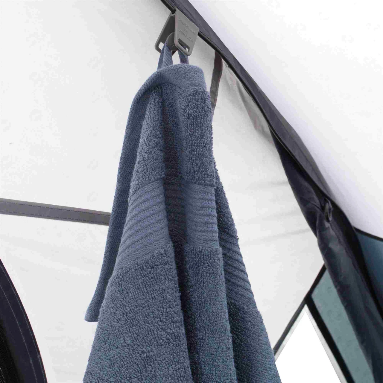 Für einen Campingurlaub mit der Familie oder mit Freunden ist das Outwell Starhill 6A eine gute Wahl. Die außen liegenden Luftkanäle sorgen für noch mehr Kopffreiheit im Inneren des Zeltes. Ein zweiter Eingang auf der Zeltrückseite ermöglicht es dir, direkt in die Schlafkabine zu gelangen oder diese zu verlassen, ohne durch den Wohnbereich zu gehen. Durch das Moskitonetz am 2. Eingang hast du zusätzlich noch die Möglichkeit der besseren Belüftung in der Schlafkabine. Das helle Dach über dem Wohnbereich schafft eine helle, freundliche Atmosphäre. Einen erholsameren Schlaf bekommst du in der abgedunkelten Premium Schlafkabine, die bei Bedarf auch in 3 separate Kabinen geteilt werden kann. Die Kabeldurchführungen ins Zelt sowie auch in die Schlafkabine ermöglichen es dir, Strom auch ins Innenzelt zu legen. Große, getönte Fenster im Wohnbereich können mit einem Vorhang verhängt werden, wenn ihr mehr Privatsphäre braucht. Das HookTrack-System im Starhill 6A schafft flexible Möglichkeiten, Lampen oder andere Dinge bis zu 1,5 kg aufzuhängen.