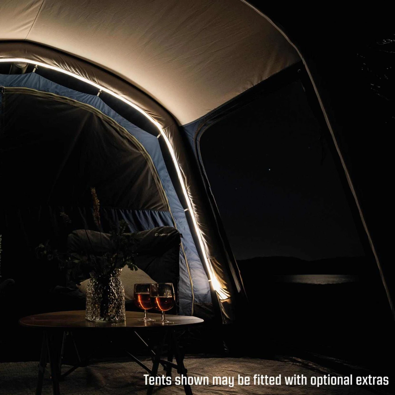 Das Wood Lake 6ATC ist für das patentierte Outwell Nightlight System (ONS) vorbereitet. Mit Hilfe des separat erhältlichen ONS Leuchtmittel-Sets bringst du die in HooTrack Kanälen integrierten Leuchtmittel zum Leuchten. Mit einer Funk-Fernbedienung schaffst du ein warmes Licht im Wohnbereich sowie am Eingang des Zeltes.