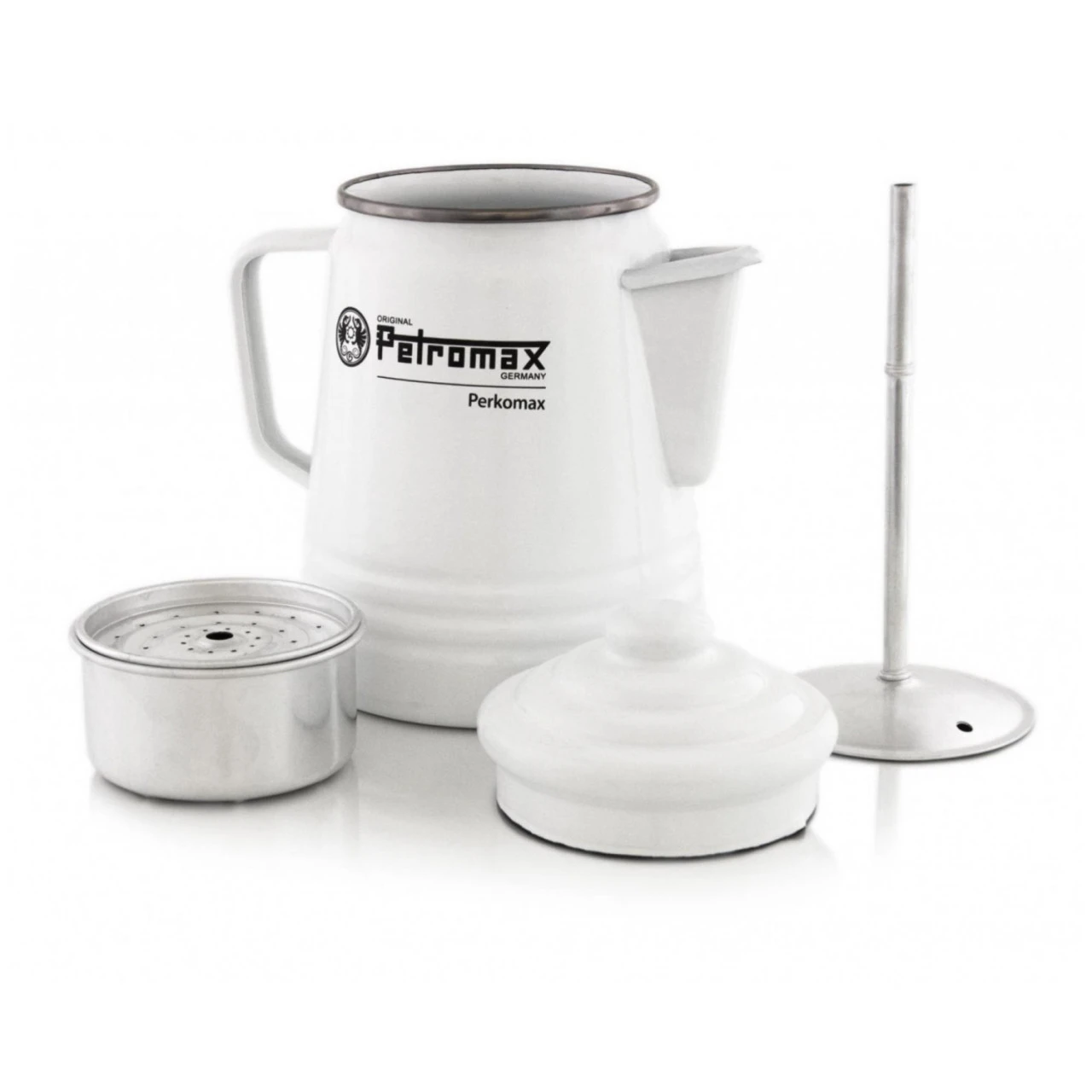 Mit dem Petromax Tee- und Kaffee-Perkolator bereitest Du Deinen Lieblingskaffee oder Deine favorisierte Teemischung besonders schonend zu. Mit dem Perkomax können bis zu 9 kleine Tassen (max. 1,3 l) Tee oder Kaffee zubereitet werden. Er ist optimal für Outdoor, Camping und Garten geeignet und in zwei Farben (schwarz und weiß) erhältlich. Der Petromax Perkolator ist für alle Herdarten geeignet.