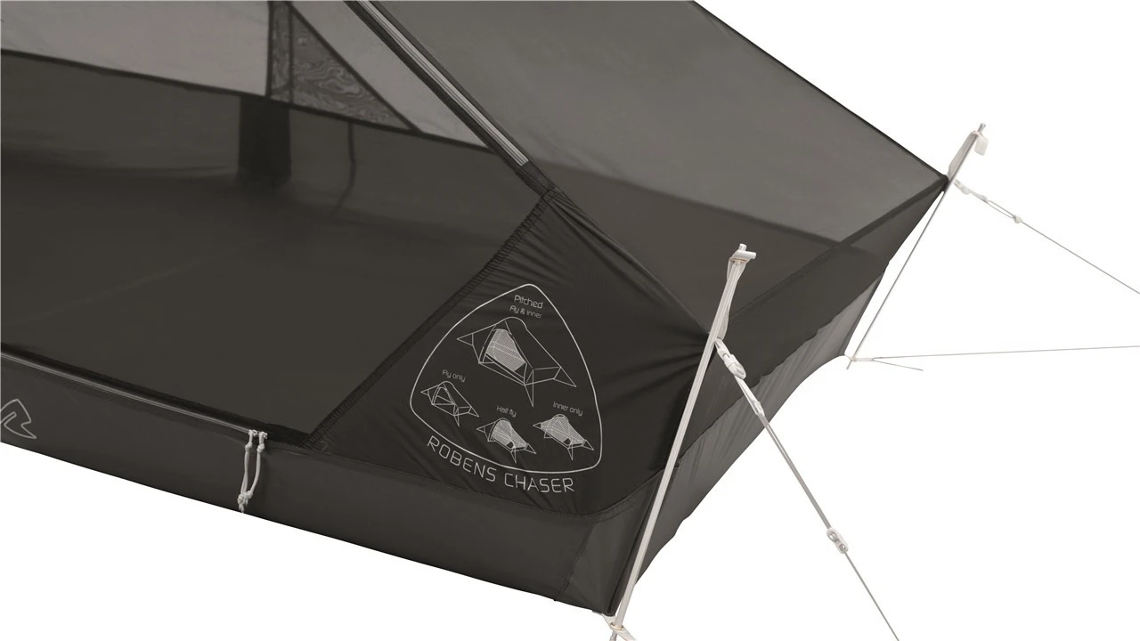 Das leichte Robens Chaser 2 Trekkingzelt bedient sich des vielseitigen FlexPitch-Systems mit Ringaufhängung im Inneren. Dadurch ergeben sich je nach Wetter verschiedene Aufbauoptionen des Zeltes. So kann in warmen Nächten bei sternenklarem Himmel das Außenzelt weggelassen werden und du kannst komplett Moskitogeschützt die Sterne genießen. Du kannst das Außenzelt aber auch nur halb aufrollen oder ganz klassisch im geschlossenen Zelt schlafen. Wenn du Gewicht spaten möchtest, kannst du das Außenzelt auch ohne das Innenzelt benutzen. Zu den äußeren Belüftungsoptionen gehören niedrige Lüftungsöffnungen, eine Apex-Türlüftung und ein Zwei-Wege-Reißverschluss.