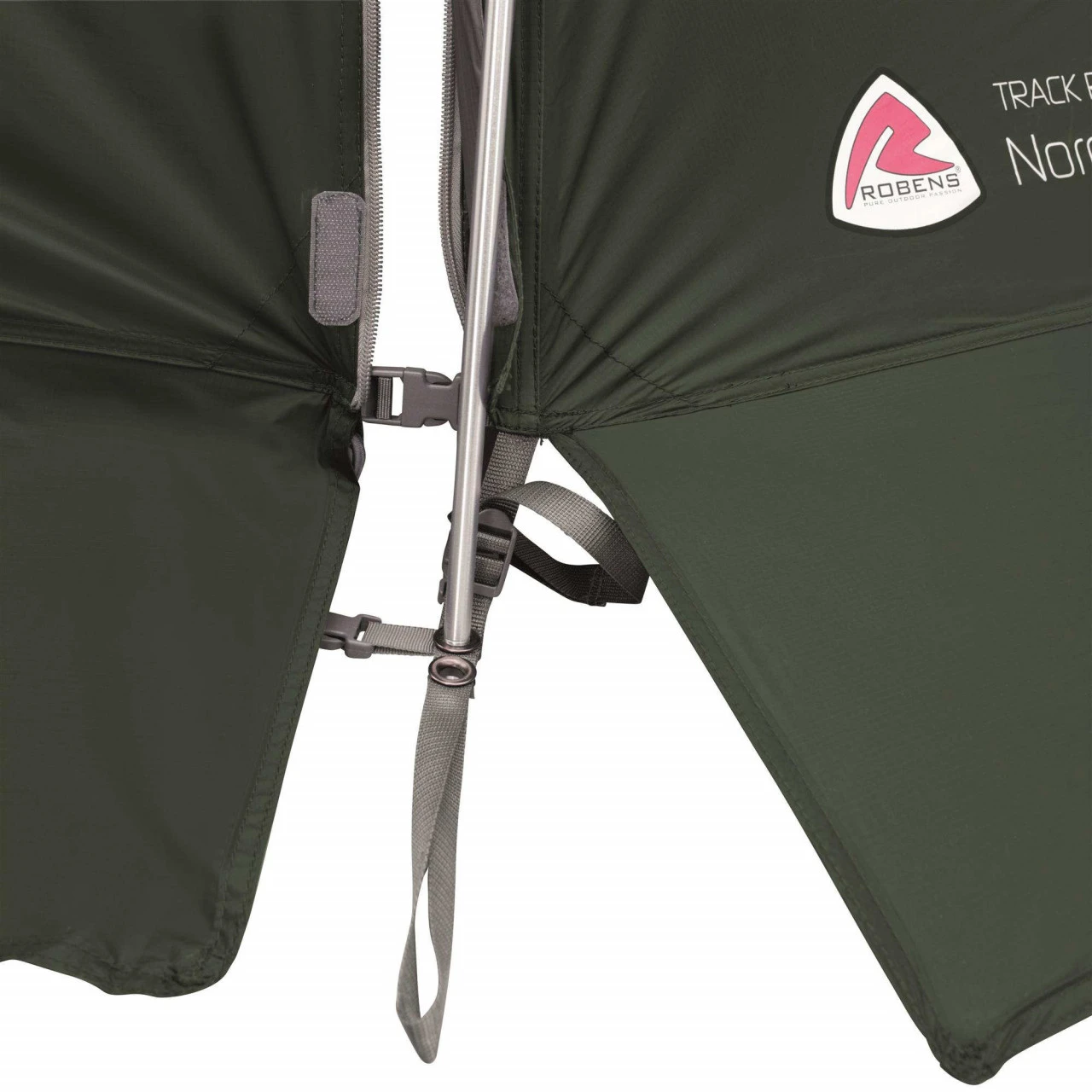 Das Trekkingzelt Robens Nordic Lynx 3 für drei Personen wurde speziell für winterliche Bedingungen entwickelt. Die extra großen Stangenkanäle bieten Platz für zwei Stange und sorgen so für zusätzliche Stabilität bei extremen Bedingungen. Weitere Sicherungsoptionen bieten die extra langen Heringsschlaufen – so können z.B. auch die Ski zum Sichern des Zeltes benutzt werden. Die langen Reißverschlussanhänger sind auch mit Handschuhen leicht zu benutzen. Eine Seitentür mit Doppelreißverschluss für flexible Belüftung bietet Zugang zum großen Vorraum. Das neue umfassende Belüftungssystem ist mit einer Netz- und einer Stoffabdeckung versehen und sorgt so für Schutz vor Schnee oder Insekten und lässt sich per Reißverschluss praktisch von innen regulieren.
