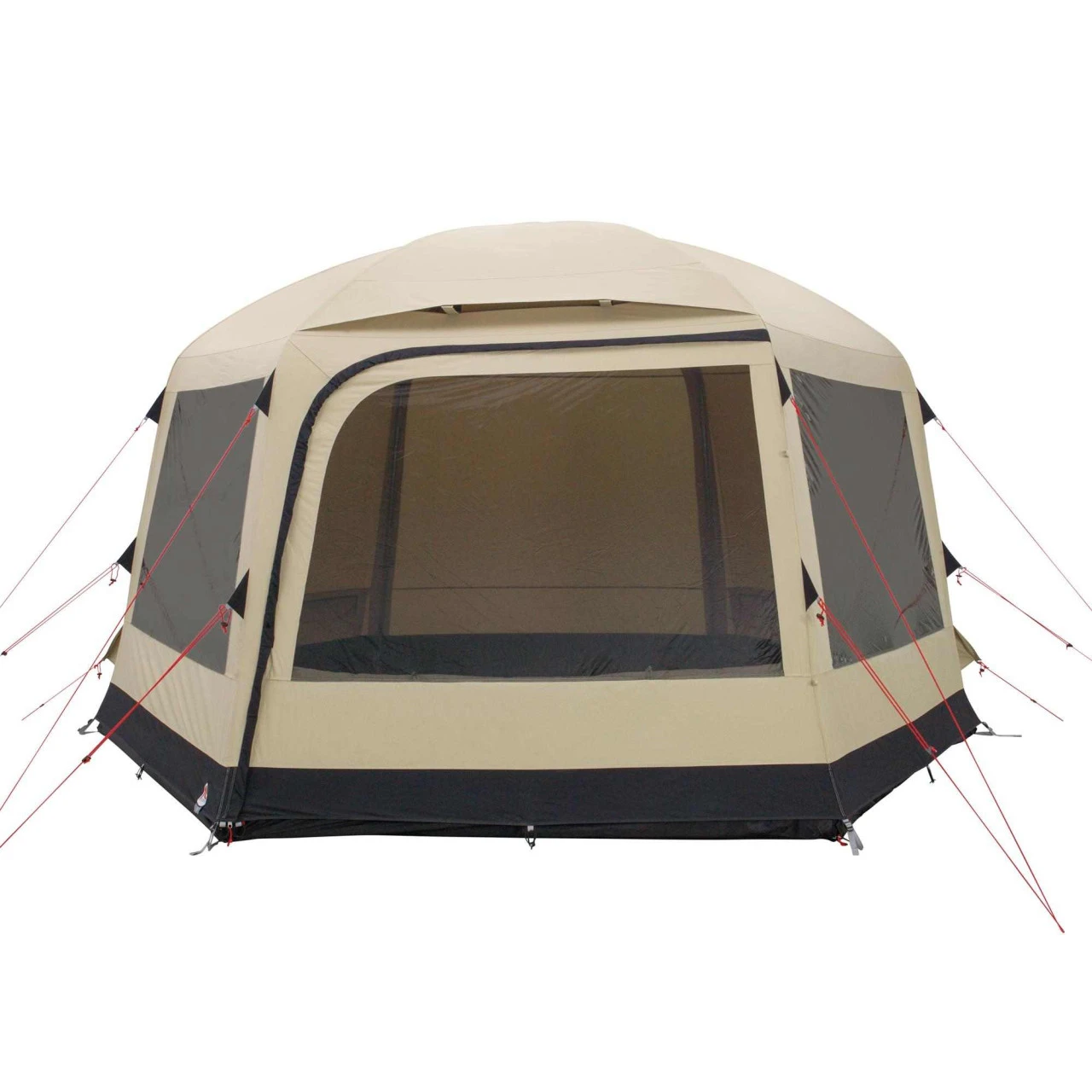 Mit der Robens Yurt bist du auf jedem Campingplatz der absolute Hingucker. Sie kann als Gruppenzelt für bis zu 7 Personen, als Glamping-Zelt, als Ess- oder Aufenthaltszelt o.ä. genutzt werden. Das besonders atmungsaktive HydroTex Polycotton Baumwoll-Mischgewebe sorgt für ein angenehmes Raumklima im Zelt. Ein steiles, stabiles Stahlrohrgestänge sorgt für eine große Kopffreiheit. Im Zeltinneren beträgt die Deckenhöhe stattliche 2,45 m! Die großen Panoramafenster sorgen dafür, dass der große Innenraum lichtdurchflutet und luftig ist. Zum Schlafen können die Fenster mit Vorhängen zugemacht werden.
