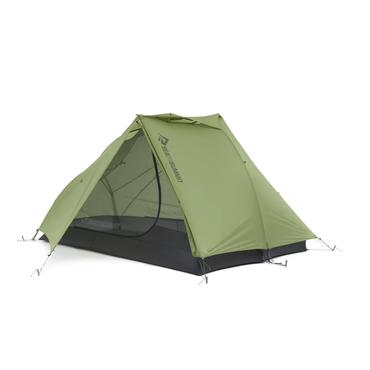 Das Alto TR2 Trekkingzelt von Sea to Summit bietet durch die neue Tension Ridge Architektur viel Platz im Zelt. Bei dieser neuen Technik sind die beiden Querstangen am höchsten Punkt des Innenzeltes nach oben gebogen, nicht wie bei anderen Zelten nach unten. Dadurch wird mehr Platz im Zelt gewonnen und es ist am höchsten Punkt 108 cm hoch. Weiterhin werden die Türen höher, was das Ein- und Aussteigen bequemer macht. Eine hohe Flexibilität gewährleisten die beiden Eingänge mit den davorliegenden Apsiden. Auch hier hast du mehr Platz für deine Ausrüstung oder als Kochstelle.