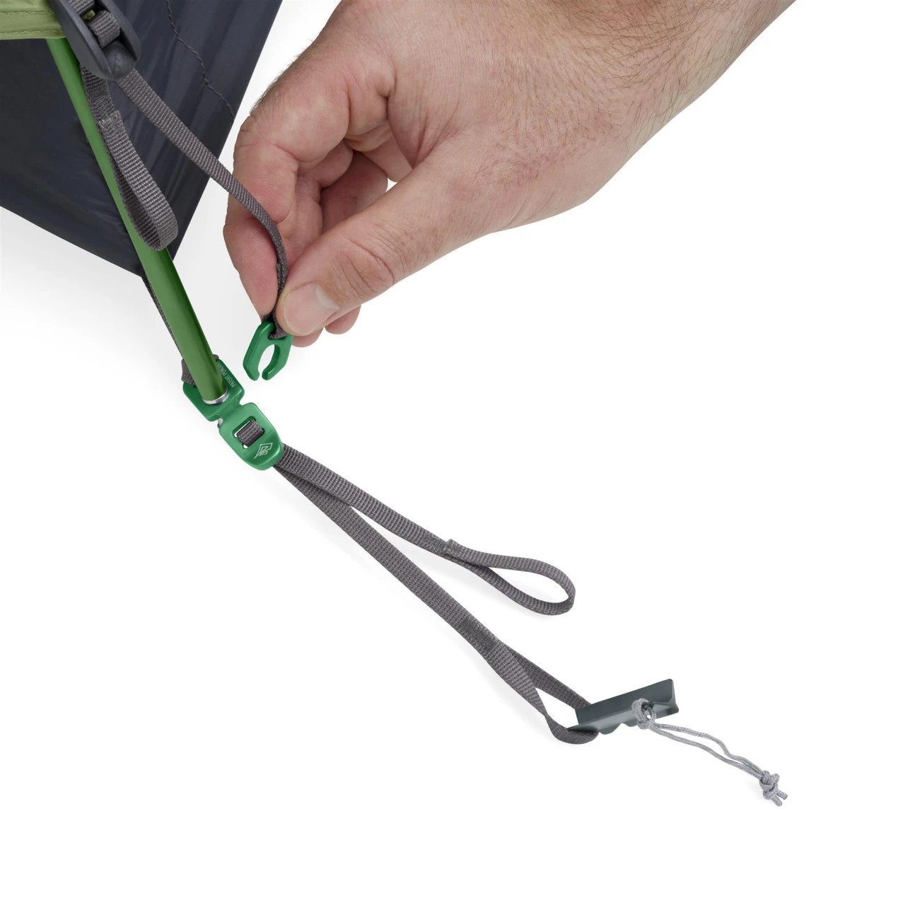 Das DAC Featherlite Aluminiumgestänge ist komplett verbunden und an den Enden farblich markiert, so dass der Aufbau sehr einfach ist. Die farblich markierten Stangenenden werden in die dafür vorgesehenen Enden am Zelt gesteckt. Sea to Summit hat die Quick-Connect Pole Feets noch weiter verfeinert. Gefräste Aluminium-Clips machen das Befestigen des Außenzeltes schnell und einhändig möglich und sie sind zudem noch deutlich haltbarer als herkömmliche Kunststoffschnallen.