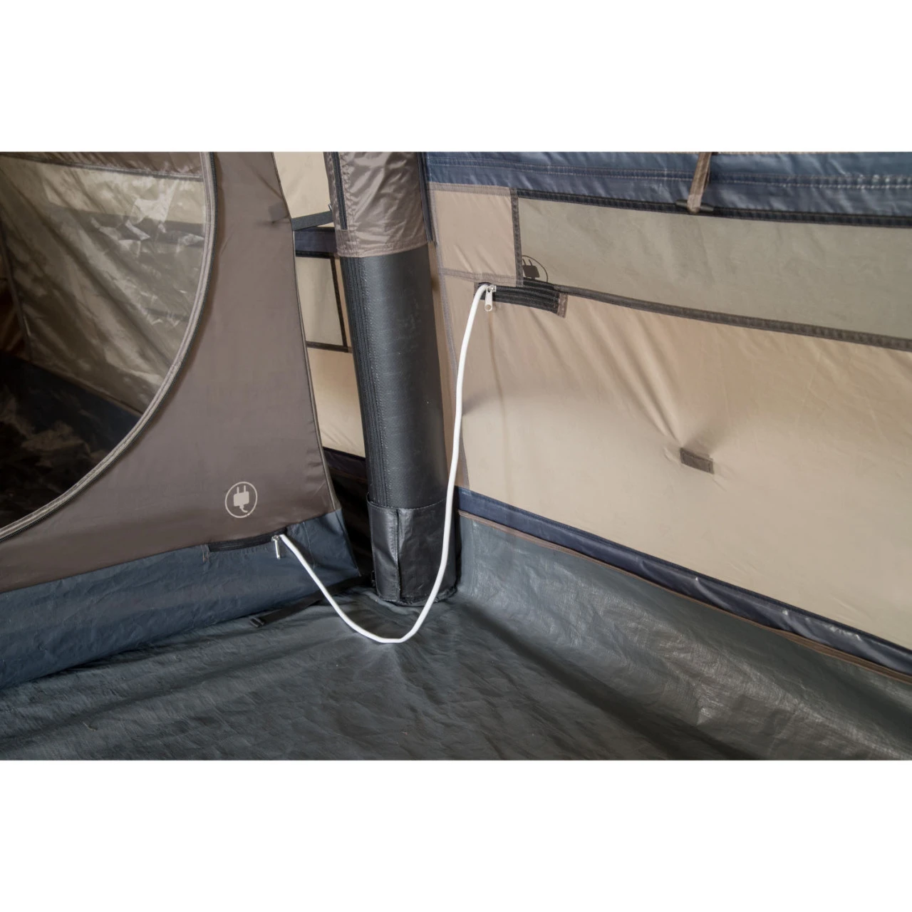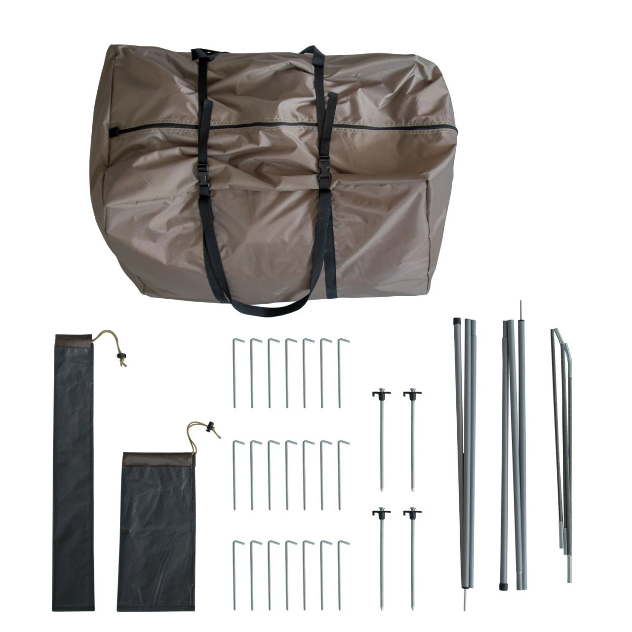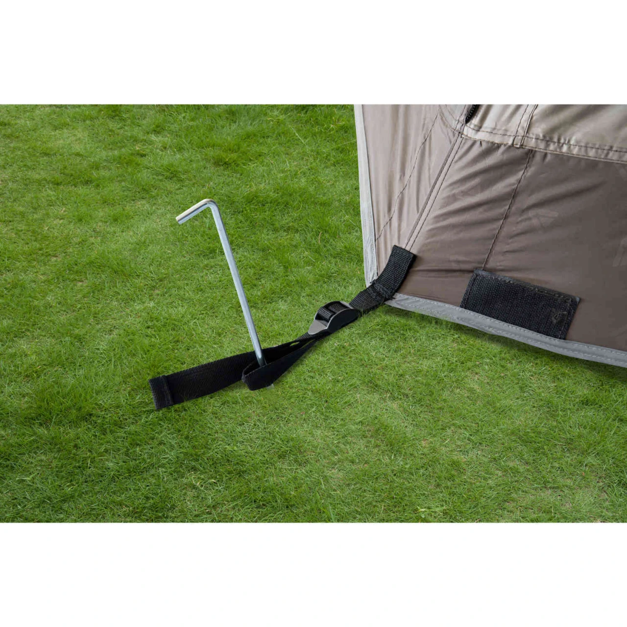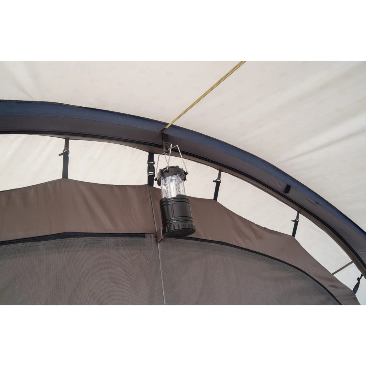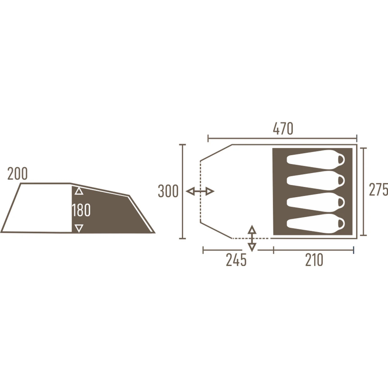 Das aufblasbare Tambu Husir Familienzelt bietet dir komfortabel Platz für 4 Personen. Das Außenzelt sowie die Schlafkabine besteht aus 100% recycletem 75D Polyestergewebe. Die fest eingenähte Bodenplane hält dein Zelt frei von Sand, Wasser und Insekten. Die Schlauchkonstruktion aus TPU sorgt dafür, dass dein Zelt innerhalb weniger Minuten steht. Der überdachte, seitliche Eingang des Husir Familienzelt ermöglicht dir eine Belüftung auch bei widrigen Wetterbedingungen. Beide Türen sind mit zusätzlichen Moskitonetztüren ausgestattet. Mit den mitgelieferten Aufstellstangen kannst du den Fronteingang aufstellen, um so über einen schattiges Plätzchen zu verfügen.