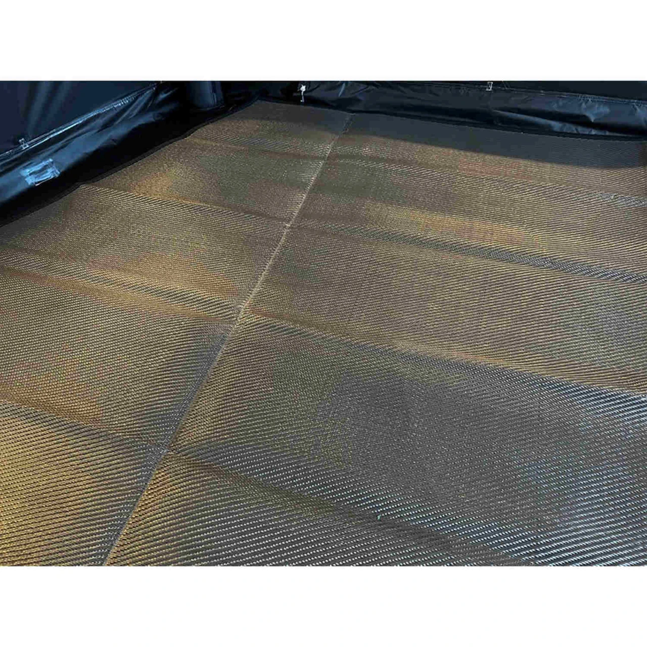 Der aus PVC hergestellte Telta Soul 390 Teppich ist atmungsaktiv, robust, leicht zu reinigen und platzsparend zusammenlegbar. Der Teppich hat zwei verschiedene Farben auf der Ober- und Unterseite und kann so je nach Geschmack mit der entsprechenden Seite im Zelt ausgelegt werden.