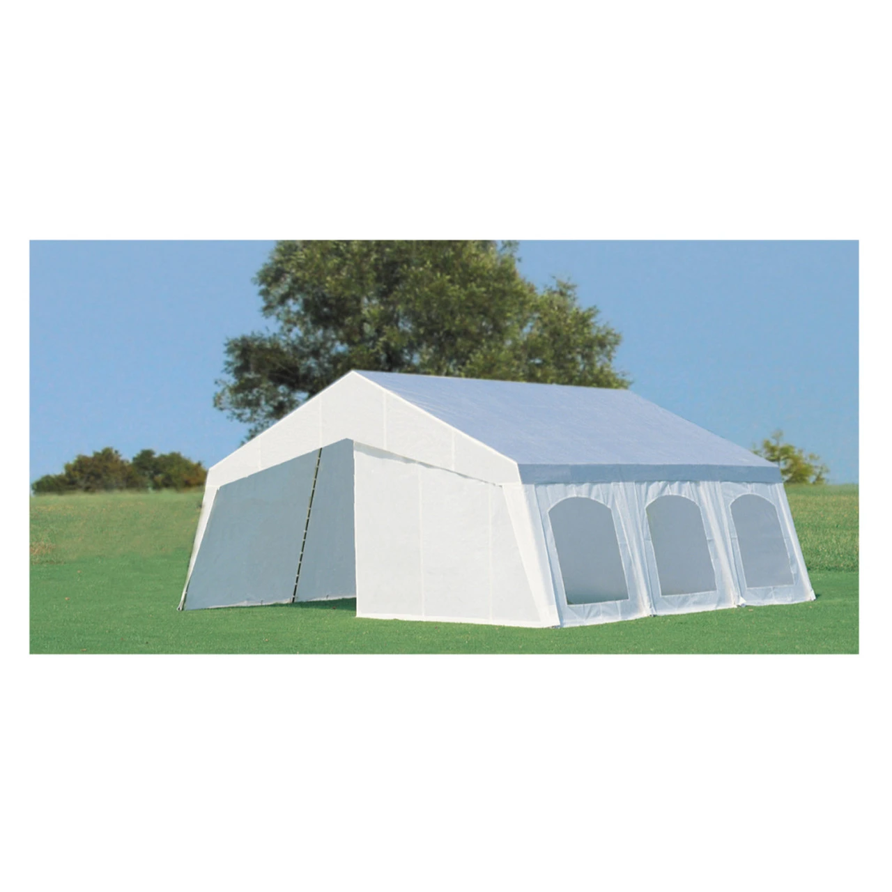 Das Tortuga Winnipeg 800 ist das ultimative Partyzelt. Schon der Aufbau gestaltet sich unkompliziert. Das Alu-Gestänge erleichtert den Transport und wurde hochgradig verdichtet und kalibriert, damit es langfrisitig für Stabilität sorgt. Das PE-Bändchengewebe ist ebenso wetterbeständig, wasserabweisend und reißfeste. Von den acht Seitenteilen sind vier mit Fenstern ausgestattet. Sie sind wegen der Klettverschlüsse beliebig kombinierbar und können auch komplett herausgenommen werden. Die komfortable Mittelhöhe von 300 cm sorgt dafür, dass den Partygästen nicht die Decke auf den Kopf fällt. Die großzügige Grundfläche von 800 x 590 cm bietet reichlich Platz zum Tanzen. Das Tortuga Winnipeg 800 Partyzelt rüstet Sie deshalb zuverlässig für die feierlichen Tage und Nächte.