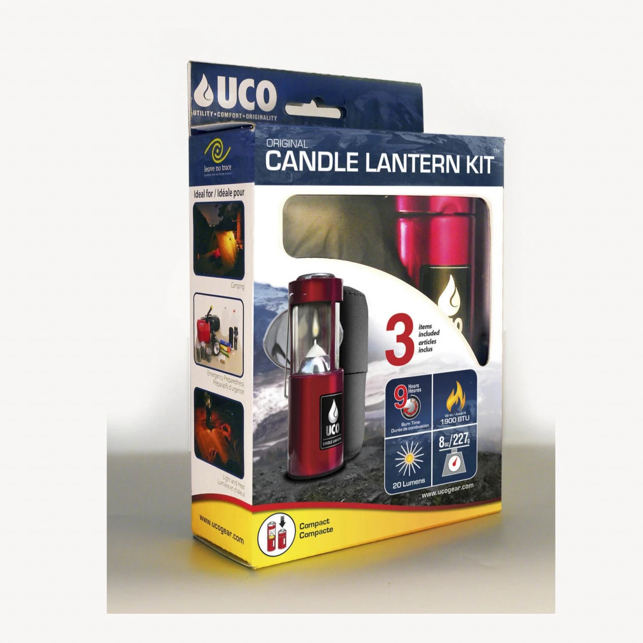 DieUCO Kerzenlaterne Set ist eine echter Klassiker und die ideale batterie- und brennstofffreie Lösung. Sie sorgt für eine gemütliche Stimmung im Zelt oder im Freien. Der Lampenkopf und die Verbindungsstäbe sind aus einem Teil gefertigt, dadurch ist die Laterne leicht zusammenschiebbar und besitzt zusätzliche Stabilität. Das versenkbare Glas bietet dir einen hohen Bedienkomfort und ermöglicht ein leichtes Austauschen der Gläser. Die Kerze wird durch eine Feder von unten nach oben stets in die ideale Leuchthöhe gedrückt. Durch einen Sichtbereich kann man sehen wie viel Restkerze noch vorhanden ist. Die Verpackung der Laterne ist zugleich als Transportbehälter benutzbar. Im Set enthalten ist dier Kerzenlaterne, ein einsetzbarer Seitenreflektor und eine Neoprenhülle für den sicheren Transport.