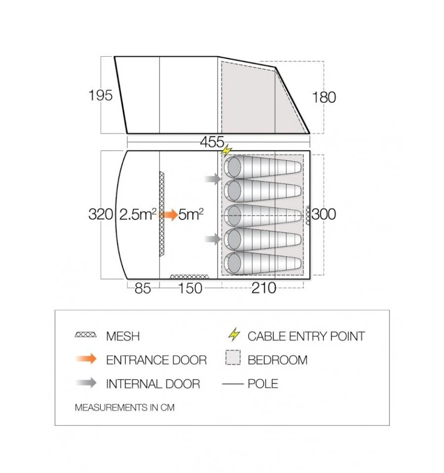 Die abgedunkelte King-Size-Schlafkabinen des Vango Harris 500bieten pro Person einen 70 cm breiten Schlafplatz und sorgen dafür, dass du nicht von den ersten Sonnenstrahlen geweckt wirst. Außerdem verfügen die Schlafkabinen über eine breitere Öffnung und die Türschwelle ist minimiert, optimal für Rollstuhlfahrer oder Kinderwagen. Die großen kristallklaren PVC-Fenster erhellen das Zeltinnere und du hast eine gute Sicht nach draußen. Das fest integrierte Sonnensegel bietet zusätzlichen Platz vor dem Zelt und schützt vor Sonne und Regen. Durch das vorgebogene Gestänge sind die Seitenwände des Harris 500 aufrecht, sodass du den kompletten Innenraum voll nutzen kannst. Das SkyTrack II®-System von Vango erlaubt es dir, Lampen, Organizer-Taschen oder Vango Sky-Liner anzubringen. So kannst du dein Zelt genau nach deinen Bedürfnissen gestalten.