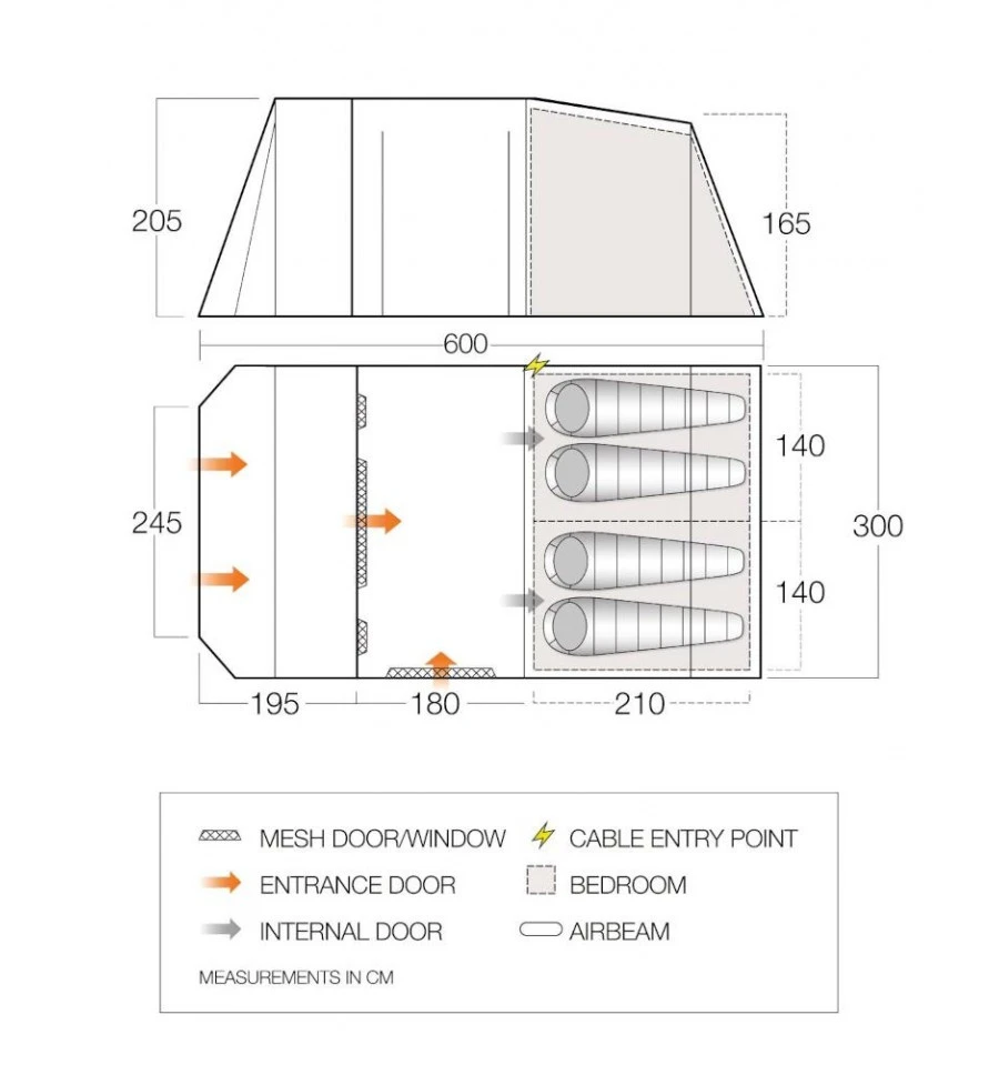 Der große Vorbereich kann als wettergeschützter Eingangsbereich oder auch als Kochstelle genutzt werden. Wenn man die Tür verschließt, entsteht ein zusätzlicher Wohnraum. Die Diamond Clear Windows lassen ausreichend Licht ins Zelt. Wenn ihr Abends vor neugierigen Blicken geschützt sein wollt, könnt ihr einfach die Vorhänge hochtoggeln. Mit Hilfe der mitgelieferten Zeltunterlage schaffst du zusätzlichen trockenen Wohnraum.