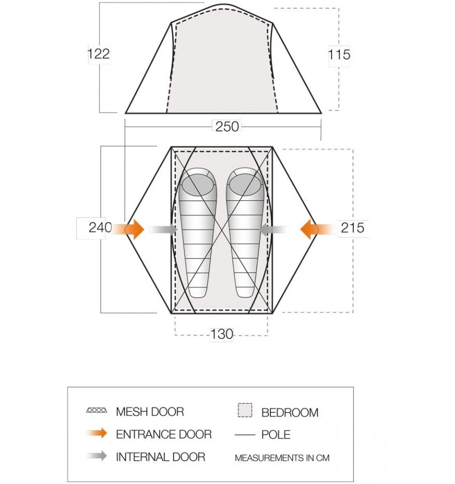 Das Vango Tryfan 200 profitiert von einem großzügig geschnittenen Innenraum und die Kombination aus den zwei extra-großen Belüftungsöffnungen im Kopf und Fußbereich und den mit Moskitonetzen ausgestatteten Türen garantiert eine außergewöhnlich gute Belüftung. Du kannst alle Lüftungen mit Reisverschlüssen verschließen, falls du sie nicht benötigst oder in kälteren Gefilden unterwegs bist.