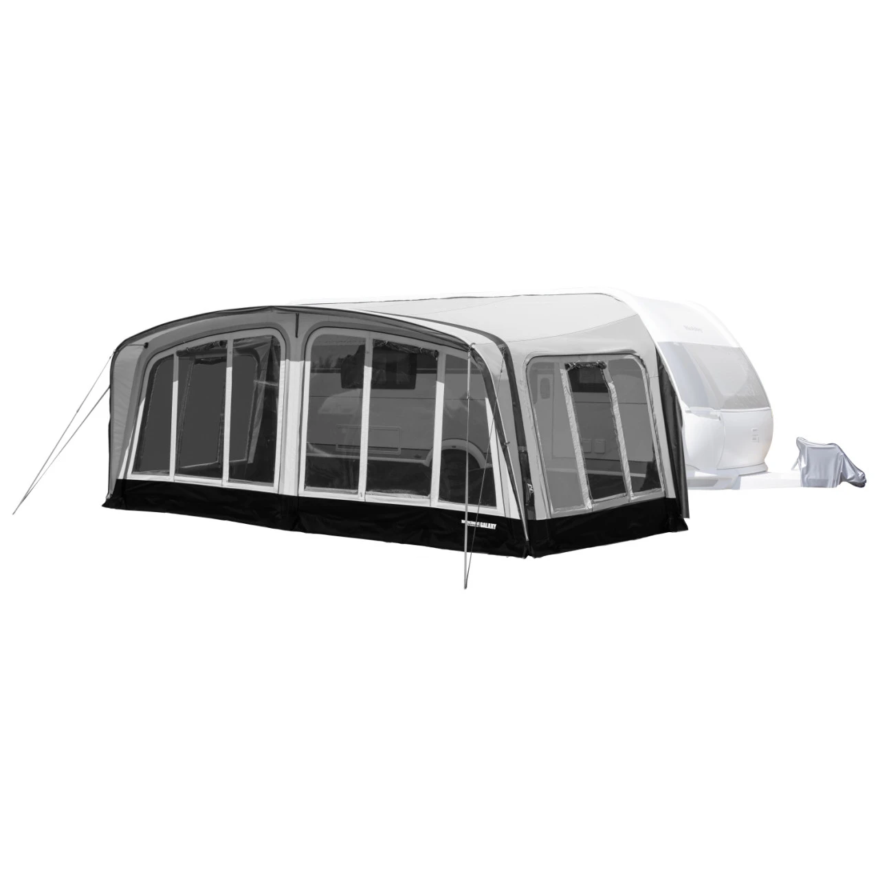 Das Westfield Galaxy ist ein Volleinzugs-Luftvorzelt für deinen Wohnwangen. Dank des Advanced Air Systems, mit dem dein Vorzelt an einem einzigen Punkt aufgepumpt wird, kannst du dein Galaxy Wohnwagenvorzelt schnell und einfach aufbauen. Ausgestattet mit Airtex und TenCate All-Season Material, hast du nicht nur eine hochwertige Haptik, sondern auch eine herausragende UV-Beständigkeit sowie einen hochwertigen Umgang mit Kondenswasser. Das Westfield Galaxy Wohnwagenvorzelt eignet sich optimal als Saisonvorzelt. Die abnehmbaren Front- und Seitenwände sind zusätzlich mit einem Moskitonetz ausgestattet und können nach Bedarf eingesetzt werden. Durch die großen Panoramafenster, die du auch ganz einfach mittels eines Reißverschlussvorhang für mehr Privatsphäre verschließen kannst, ermöglichen dir einen perfekten Ausblick und optimale Lichtverhältnisse. Ein optionales Vordach an der Front des Zeltes, das du mittels Keder anbringst, verschafft dir zusätzlich geschützten Raum – ob bei Sonne oder Regen.