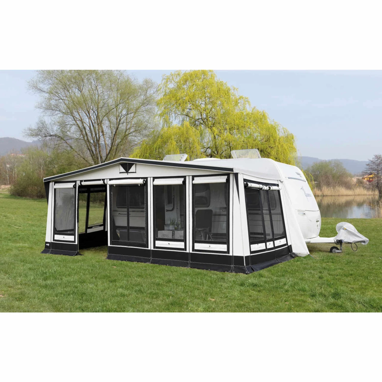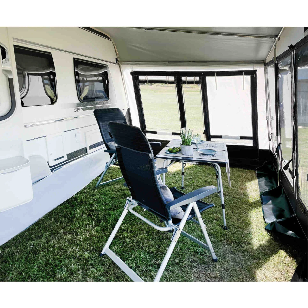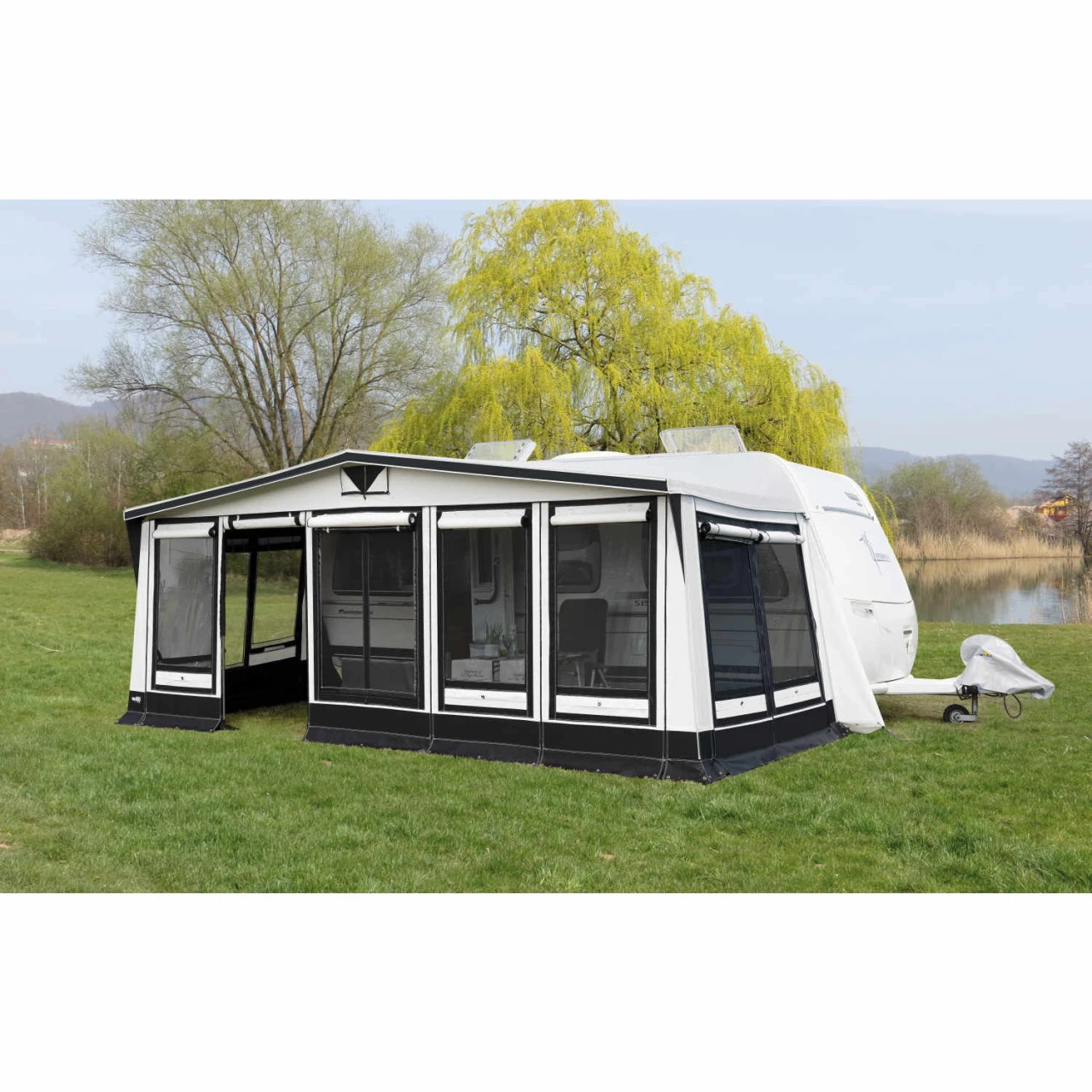 Mit dem zeitgemäßen Wigo Alesund Wohnwagenvorzelt verwandelst du deinen Wohnwagen für die schönsten Wochen im Jahr in ein kleines Refugium. Mit einer Tiefe von 300 cm hast du genug Platz für dich und deine Familie. Die stabile Verarbeitung lässt keine Wünsche offen und gleichzeitig alle widrigen Witterungseinflüsse vor der Tür. Die Vorderwand lässt sich zur Veranda abklappen oder komplett herausnehmen. Ebenfalls lassen sich die Seitenwände komplett herausnehmen und gegenseitig austauschen. Dank der großen Fenster hast du einen optimalen Lichteinfall im Vorzelt. Bei Bedarf können die Fenster mit Stoffklappen für mehr Privatsphäre verschlossen werden.
