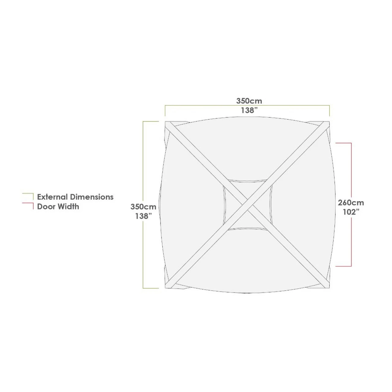 Der aufblasbare Zempire Aerobase 3 Pavillon inkl. 1 Wand lässt sich in wenigen Minuten aufbauen und noch schneller zusammenpacken. Der Rahmen aus Luft- und Fiberglasgestänge ist windstabil und die durchdachte Konstuktion der Außenhülle verhindert das Risiko von gebrochenen Stangen. Die Größe von 3,5 x 3,5 m ist die beliebteste Version des Aerobase, das ein ausgewogenes Verhältnis zwischen einem großen schattigen Bereich und einem geringen Gewicht und Packmaß bietet. Der Zempire Aerobase 3 Pavillon lässt sich auch gut mit den Zelten der Evo-Serie kombinieren, wenn ein Zempire Evo Link verwendet wird. Durch obere Belüftungsöffnungen entweicht feuchtwarme Luft und sorgt somit für ein angenehmes Klima.