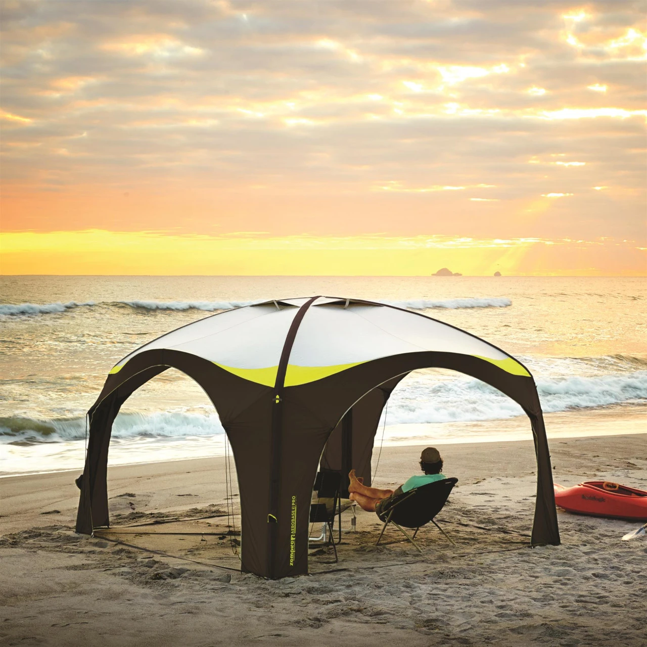 Der aufblasbare Zempire Aerobase 3 Pro Pavillon wurde aus demselben Stoff wie die Zelte der Pro-Serie hergestellt und lässt sich mit Hilfe des Pro-Links nahtlos an dein Zelt anpassen. Der Rahmen aus Luft- und Fiberglasgestänge ist windstabil und die durchdachte Konstuktion der Außenhülle verhindert das Risiko von gebrochenen Stangen. Dank des geringen Gewichts, des kleinen Packmaßes und der robusten Konstruktion eignet er sich ideal für Tagesausflüge und längere Campingurlaube. Der Zempire Aerobase 3 Pro Pavillon lässt sich auch gut mit den Zelten der Pro-Serie kombinieren, wenn ein Zempire Pro Link verwendet wird. Durch obere Belüftungsöffnungen entweicht feuchtwarme Luft und sorgt somit für ein angenehmes Klima.