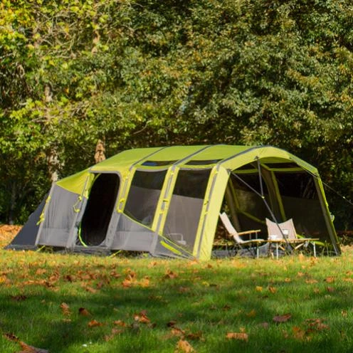 Das Zempire Evo TL V2 Familienzelt ist das ideale Einsteiger-Zelt für Paare oder kleinere Familien. Der große Vorraum, die PVC-Dachfenster und die hervorragende Belüftung machen das Evo TL V2 Familienzelt zu einem komfortablen Zelt. Ein lichtreflektierendes Material innerhalb der Schlafkabine sorgt für ungestörten Schlaf an Morgenden. Die abgewinkelte Balkenkonstruktion bietet verbesserte Windstabilität und Kopffreiheit im gesamten Zelt. Ein doppelwandiges Fenster erzeugt einen angenehm kühlen Luftstrom in warmen Nächten. Getönte PVC-Fenster bieten Privatsphäre im Zelt, ohne die Sicht einzuschränken. Dank dem aufblasbaren AirFrame System ist das Zelt im Handumdrehen auf- und abgebaut. Zusätzlich kommt die SeroLink Technologie zum Einsatz, die das Gestänge direkt mit dem Außenzelt verbindet. Dies sorgt nicht nur für ein Plus an Belastbarkeit und Flexibilität, sondern spart auch noch Gewicht. Darüber hinaus garantiert die abgewinkelte Konstruktion eine maximale Kopffreiheit. Das Außenzelt aus strapazierfähigem Oxford Polyester verfügt über getapte Nähte und bietet somit auch bei Starkregen zuverlässigen Wetterschutz.