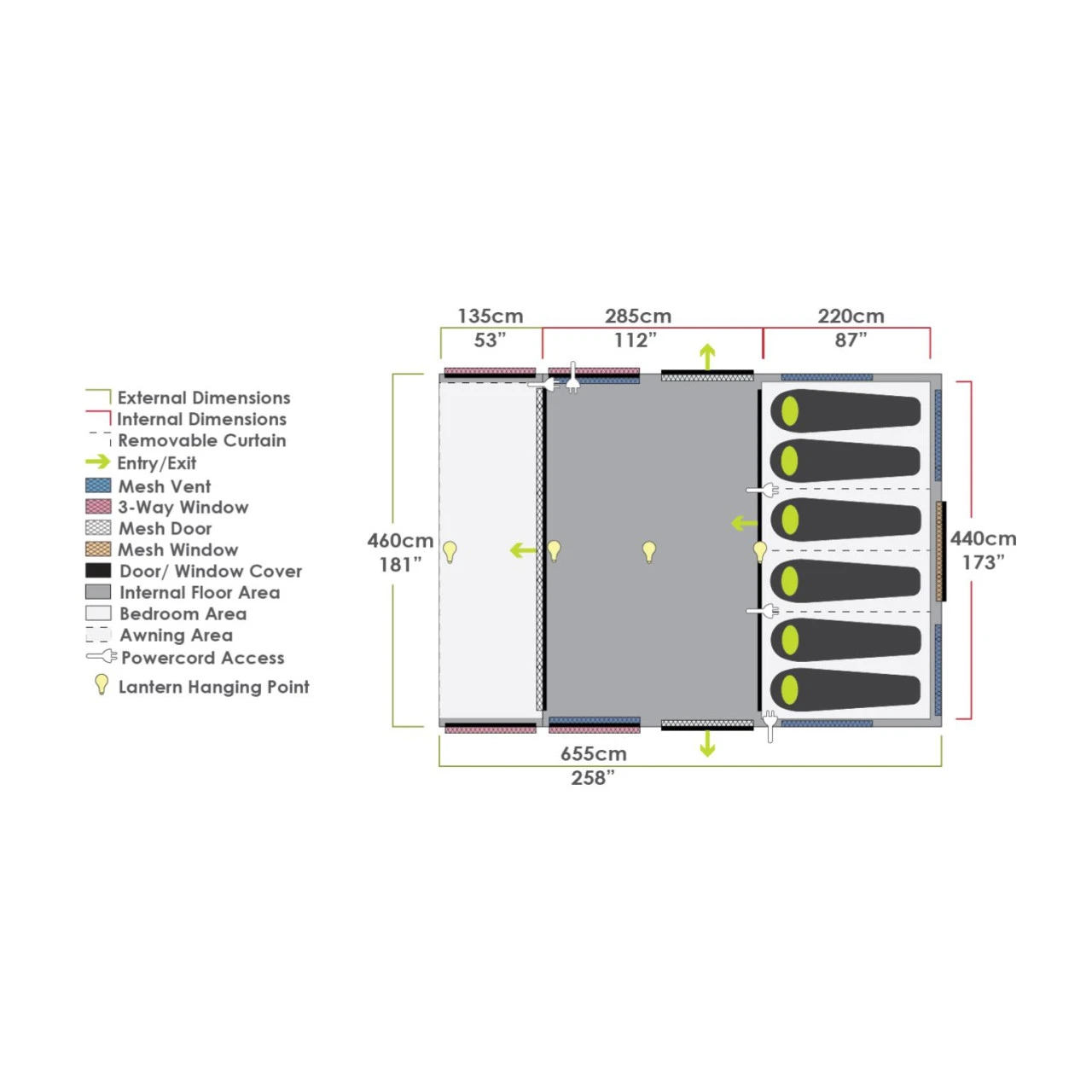 Das Zempire Evo TXL V2 Familienzelt ist das ideale Einsteiger-Zelt für Paare oder Familien. Der große Vorraum, die PVC-Dachfenster und die hervorragende Belüftung machen das Evo TXL V2 Familienzelt zu einem komfortablen Zelt. Ein lichtreflektierendes Material innerhalb der Schlafkabine sorgt für ungestörten Schlaf an Morgenden. Die abgewinkelte Balkenkonstruktion bietet verbesserte Windstabilität und Kopffreiheit im gesamten Zelt. Ein doppelwandiges Fenster erzeugt einen angenehm kühlen Luftstrom in warmen Nächten. Getönte PVC-Fenster bieten Privatsphäre im Zelt, ohne die Sicht einzuschränken. Dank dem aufblasbaren AirFrame System ist das Zelt im Handumdrehen auf- und abgebaut. Zusätzlich kommt die SeroLink Technologie zum Einsatz, die das Gestänge direkt mit dem Außenzelt verbindet. Dies sorgt nicht nur für ein Plus an Belastbarkeit und Flexibilität, sondern spart auch noch Gewicht. Darüber hinaus garantiert die abgewinkelte Konstruktion eine maximale Kopffreiheit. Das Außenzelt aus strapazierfähigem Oxford Polyester verfügt über getapte Nähte und bietet somit auch bei Starkregen zuverlässigen Wetterschutz.